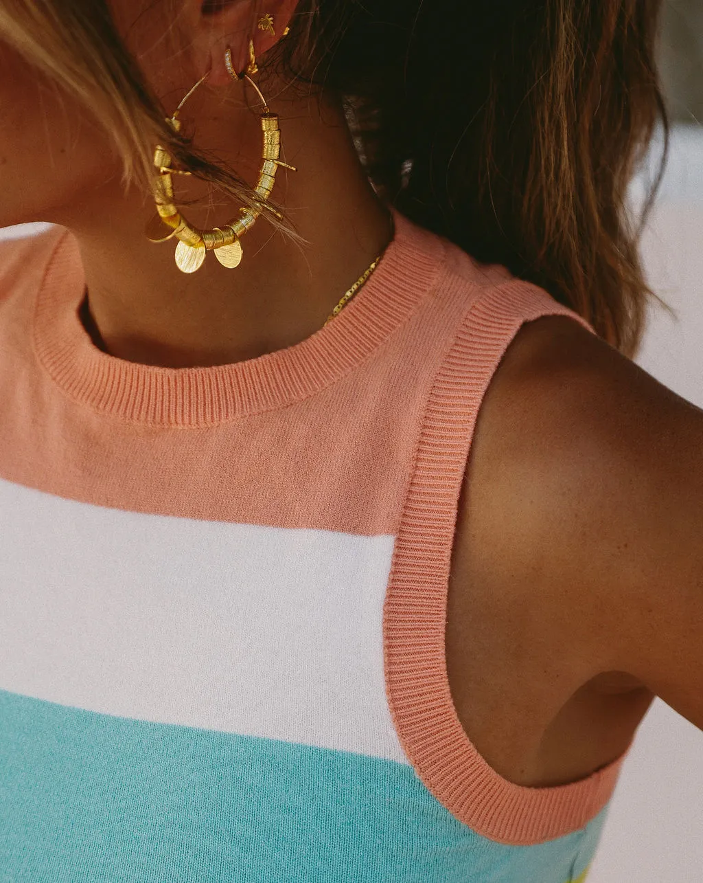 Fun and bright, the Sobe Striped Knit Mini Skirt in multi features an elastic waistband.