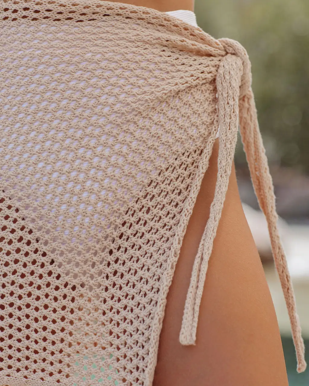 Spend all summer at the beach in our Sorrento Cotton Sarong! This sand colored sarong is detailed with a waist tie closure. Wear this sheer piece over your favorite two piece swimsuit paired with sandals. Styled with the Perfect Hoop Earrings, Elena Pendant Necklace, Compass Coin Necklace, Chloe Mini Necklace, Simple Bangle Bracelet, Jet Lag Woven Straw Tote Bag, Float Ribbed Cut Out Bikini Bottom, Float Ribbed Bikini Top, and Brianne Twisted Faux Leather Sandal.