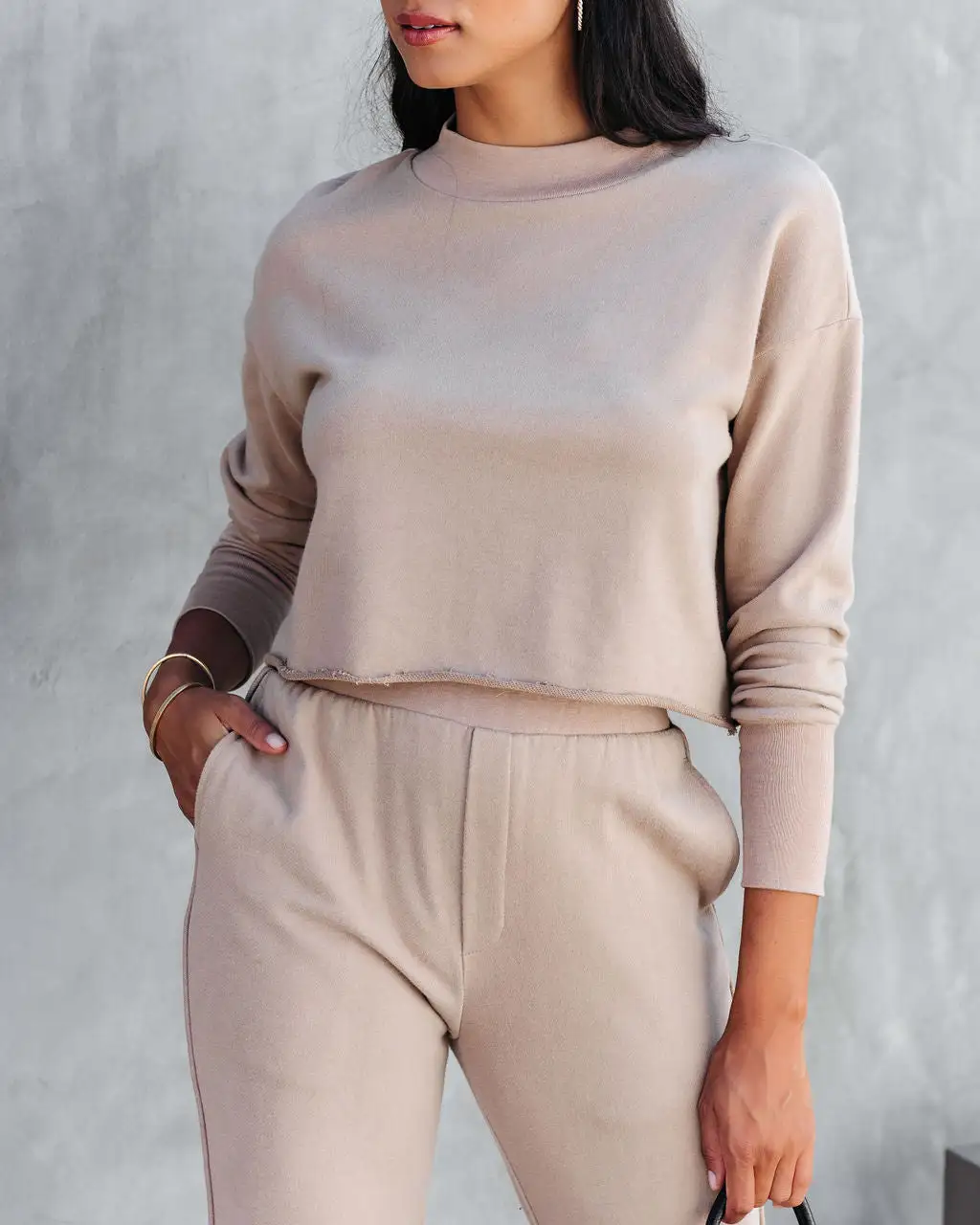 Travel in style in the Airport Glam Cotton Mock Neck Long Sleeve Top in camel that features a high neckline.