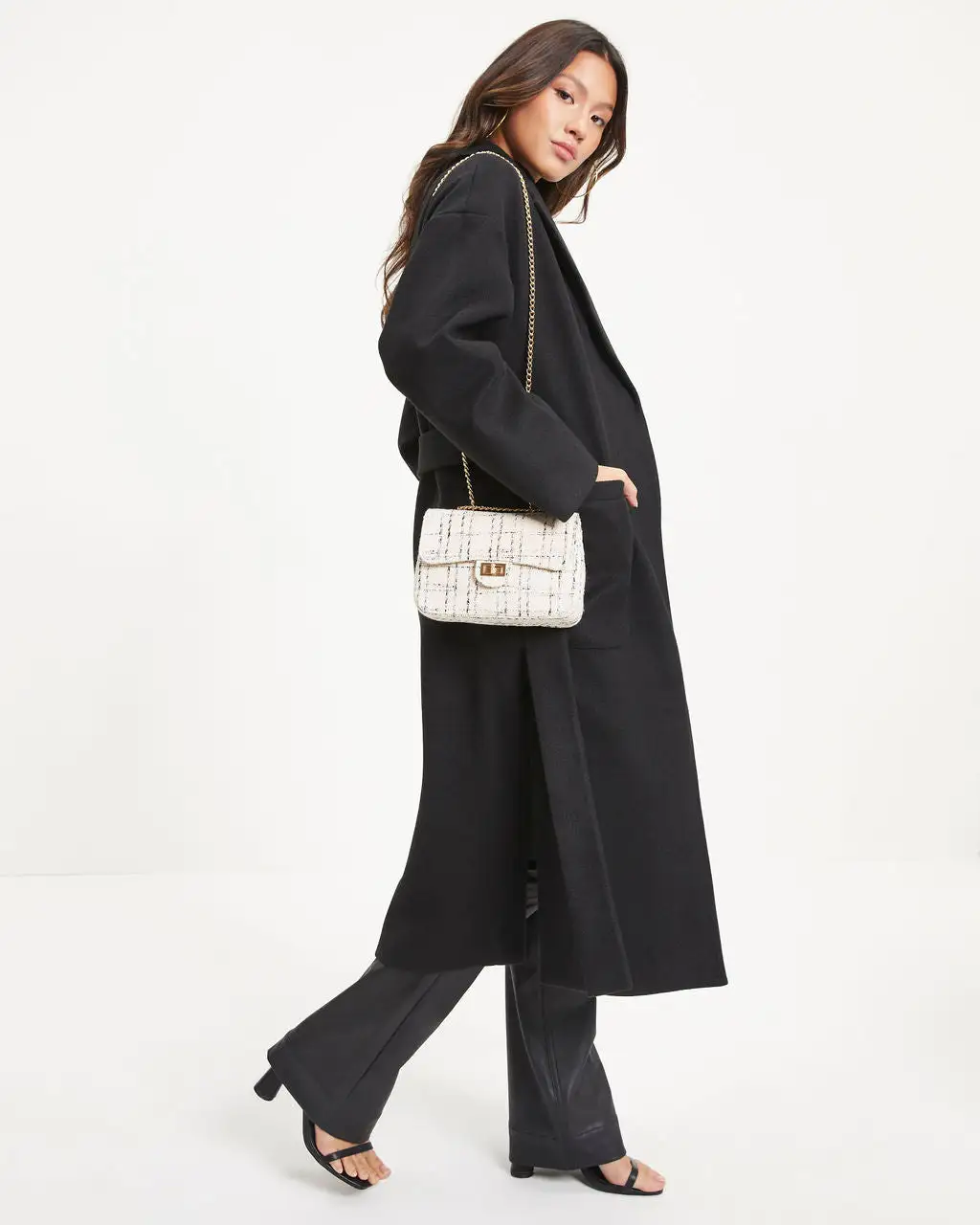 Add a preppy touch to your look in the Amelia Crossbody Tweed Bag in white that features gold hardware.