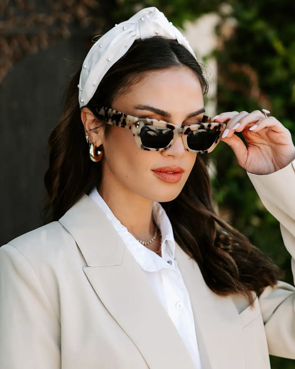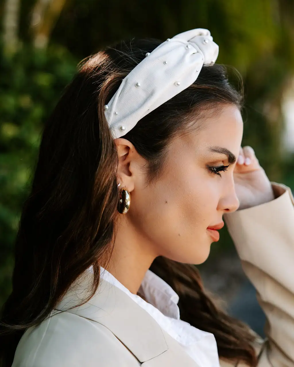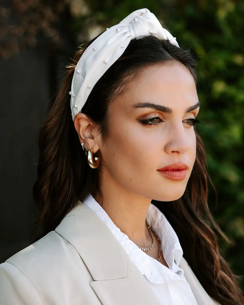 Angela Twisted Front Pearl Embellished Headband – White – SALE