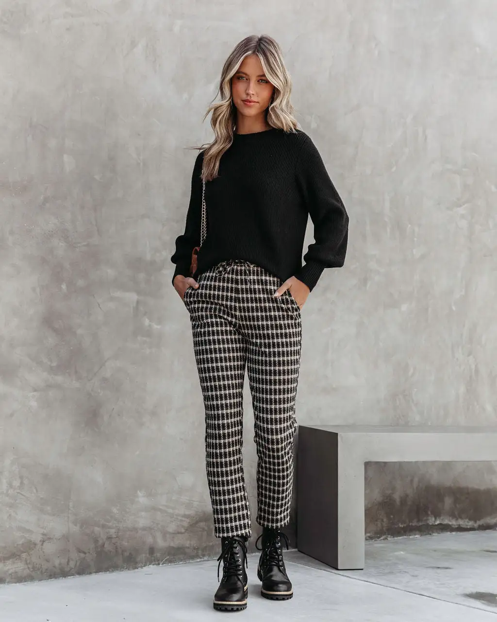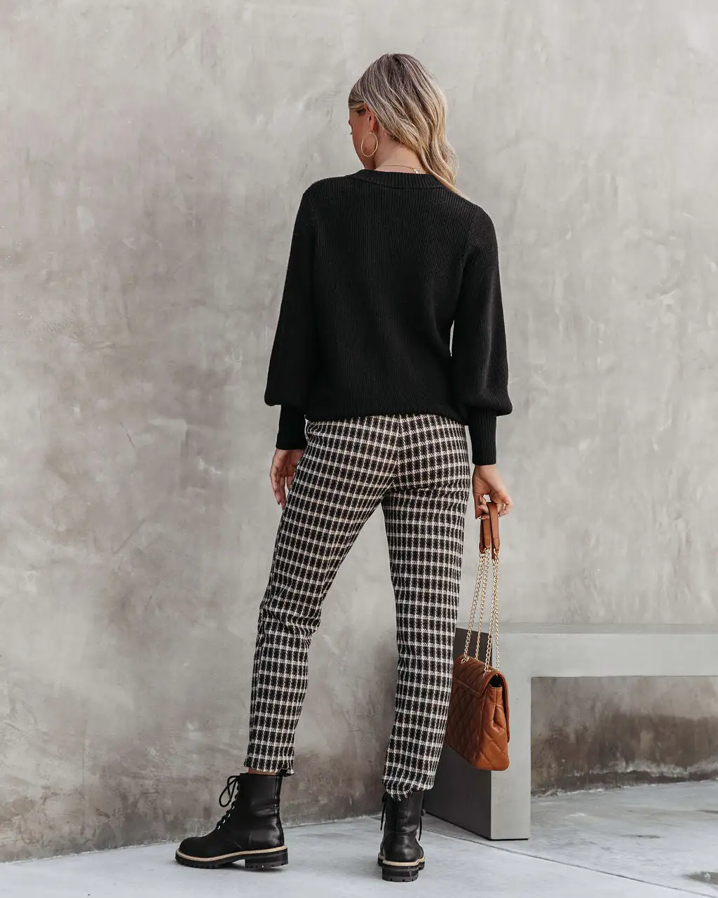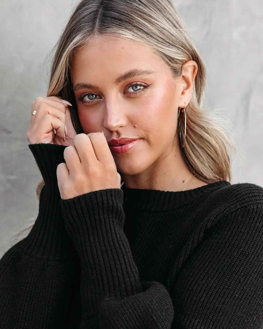 Comfy meets classic in the Baby It’s You Knit Balloon Sleeve Pullover Sweater in black that features a high neckline.