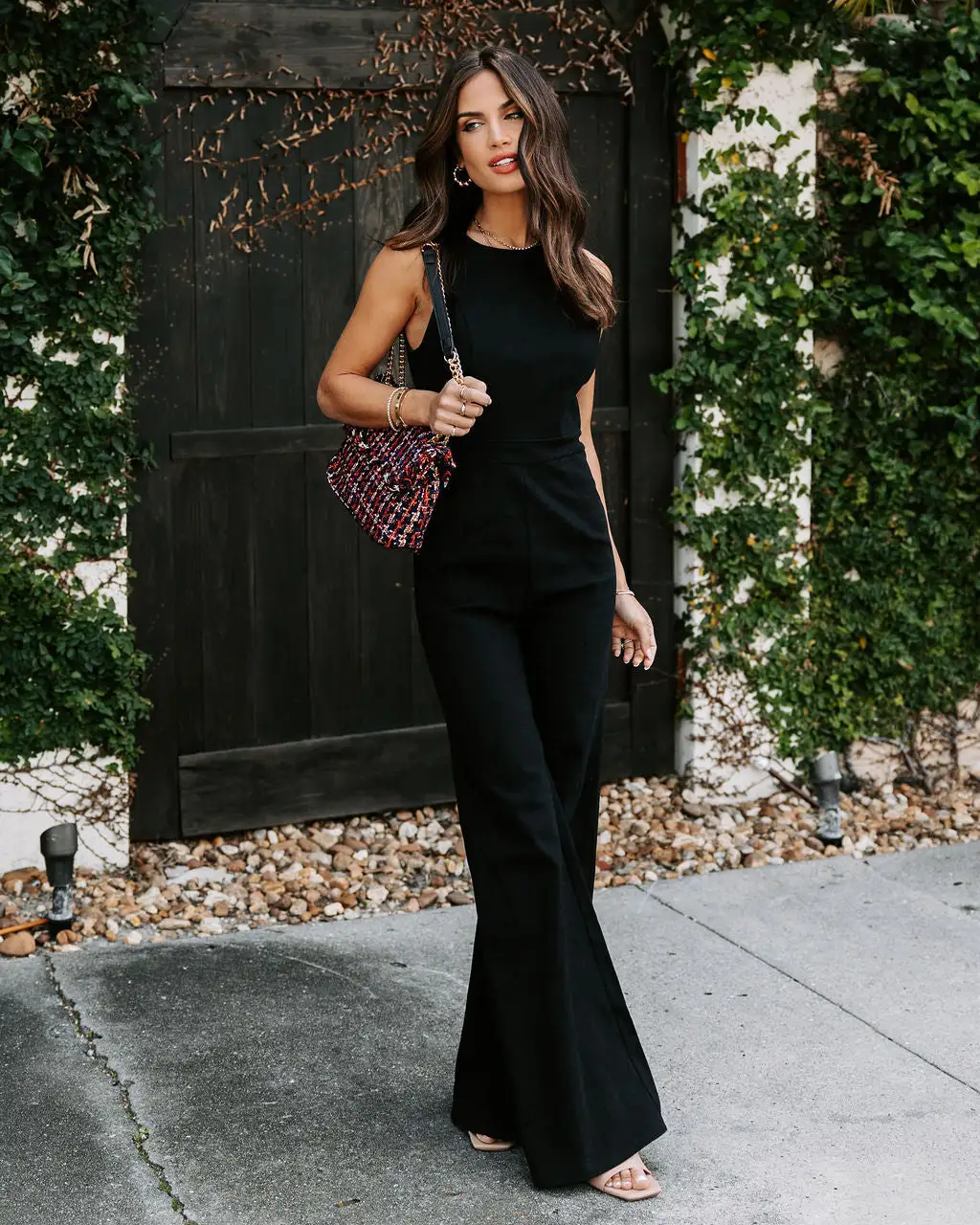 Keep it classic in the Beautiful Minds Cotton Flare Jumpsuit in black that features a relaxed fit.