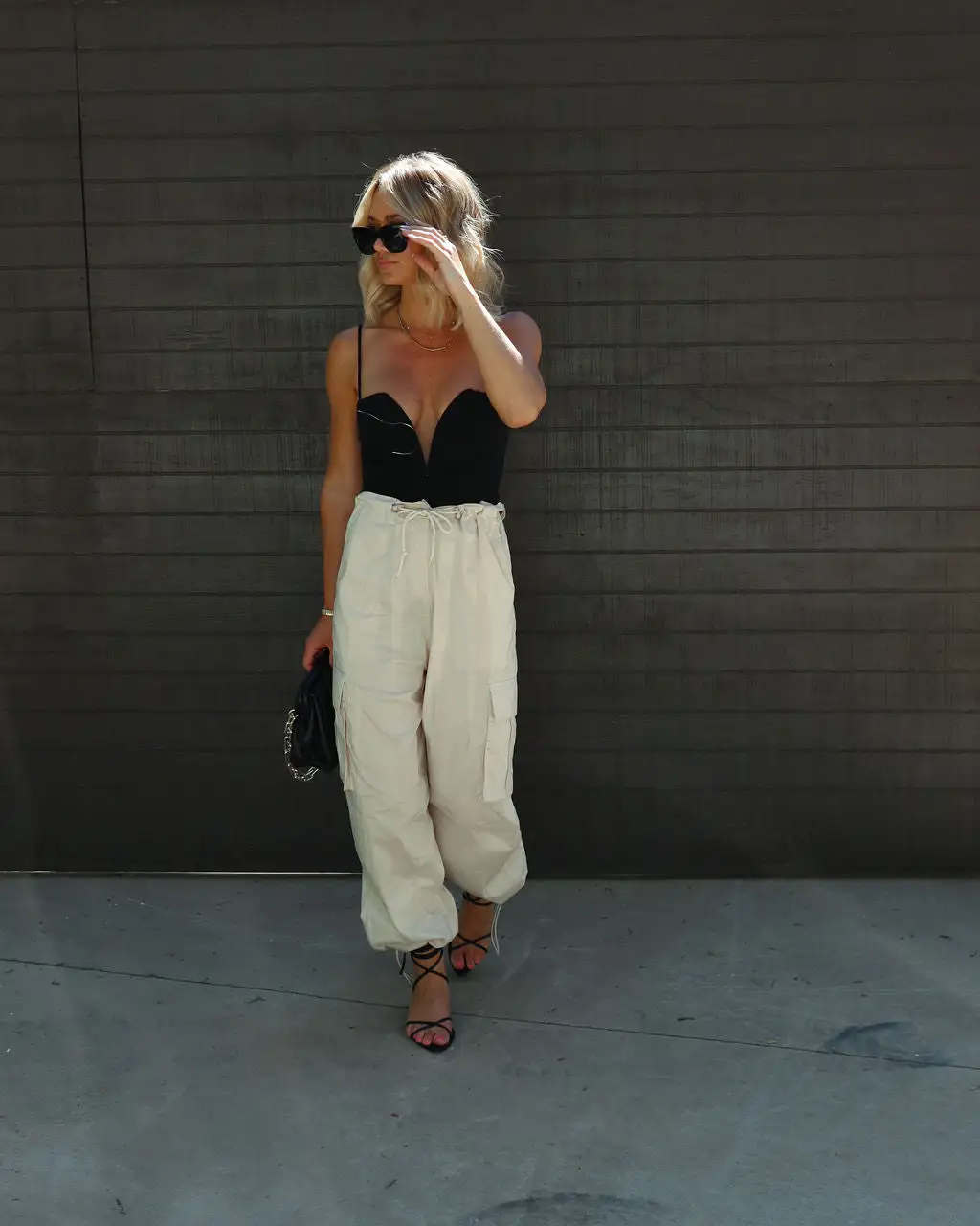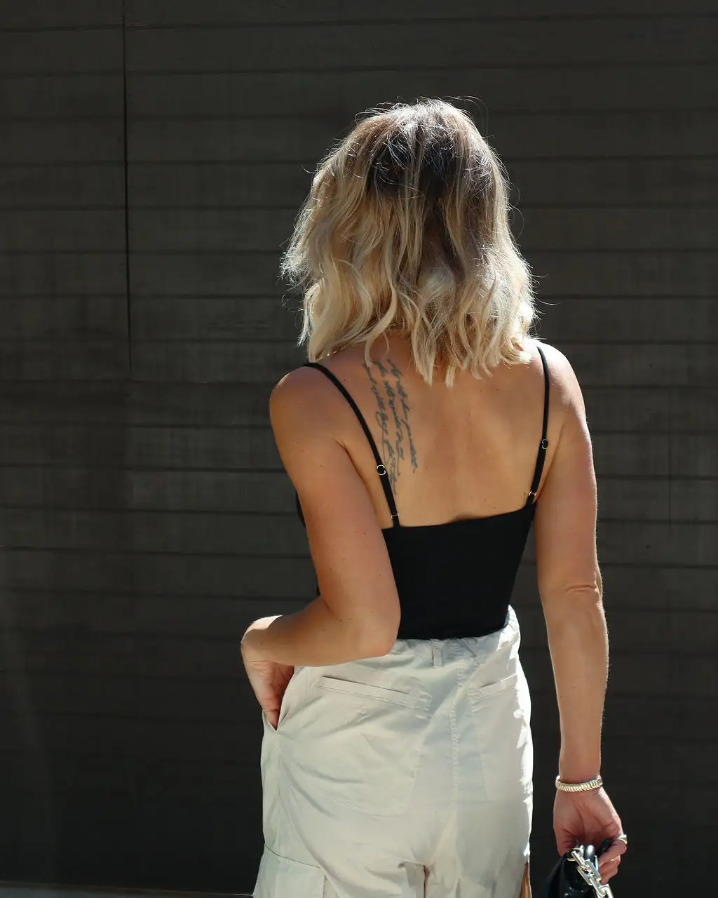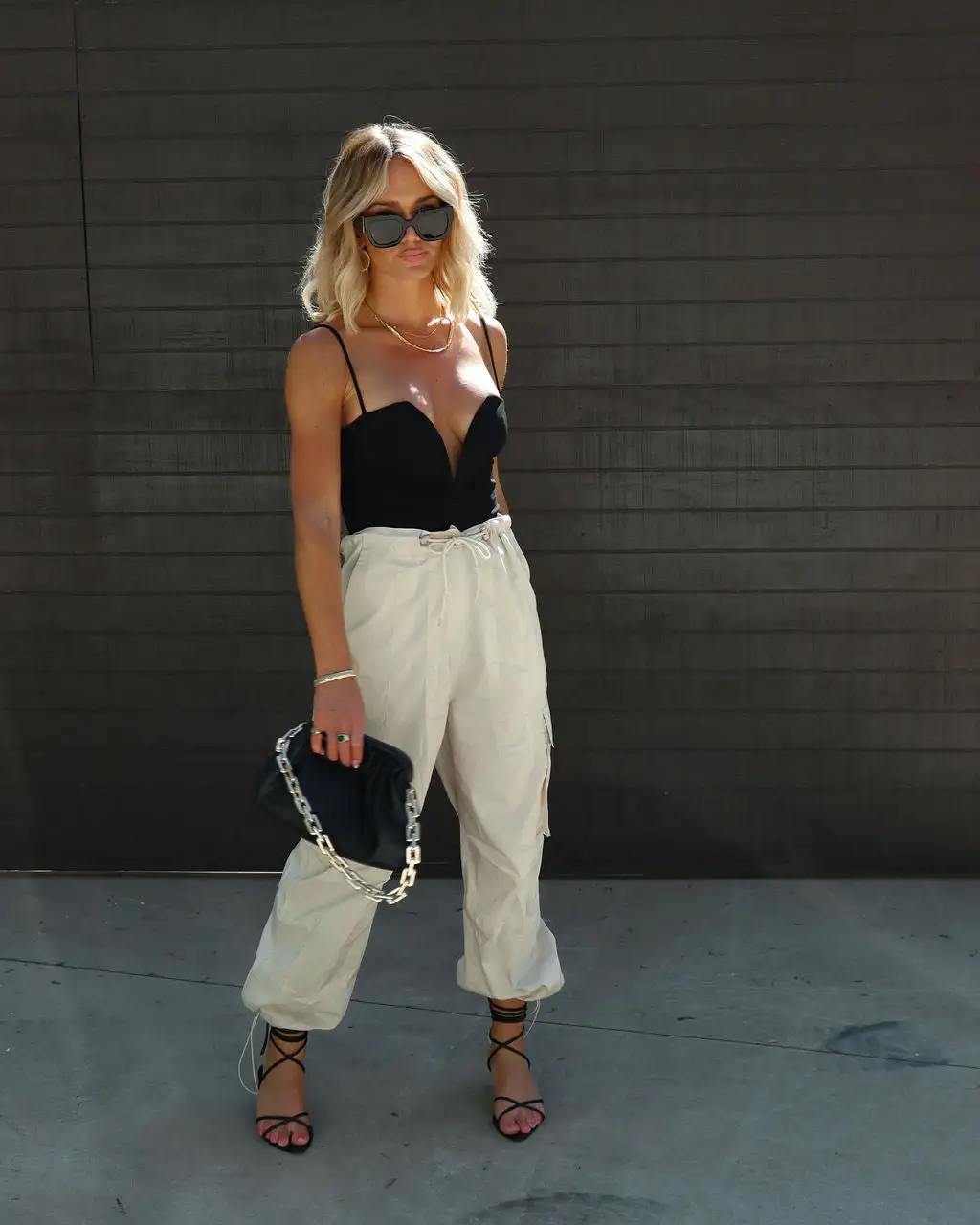 Model is Wearing a Size Small. Height is 5’8″, Bust is 35”, Waist 26”, and Hips 36”