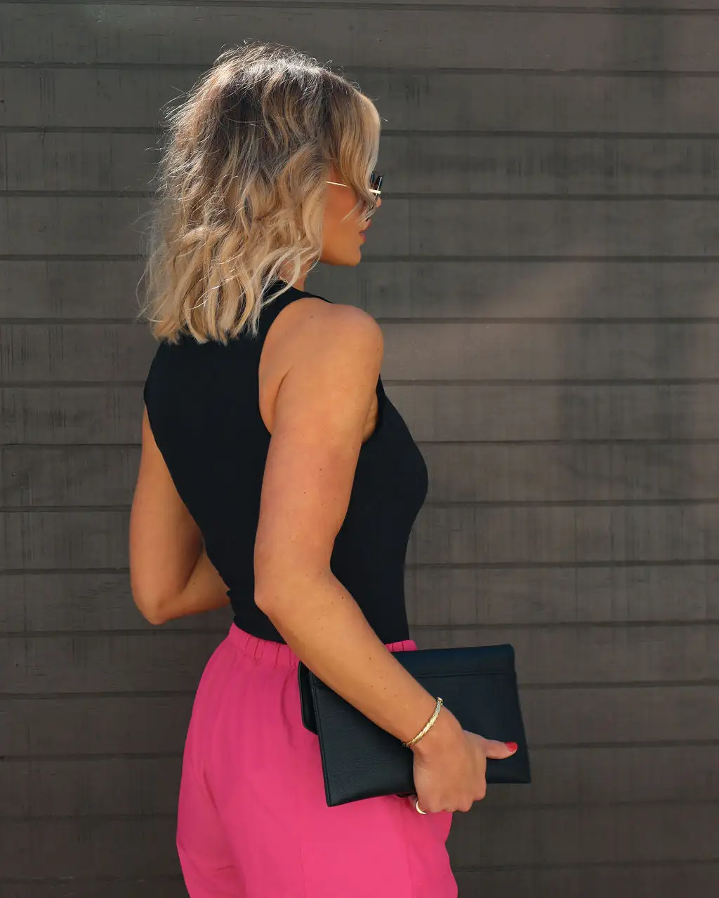 Model is Wearing a Size Small. Height is 5’8″, Bust is 35”, Waist 26”, and Hips 36”