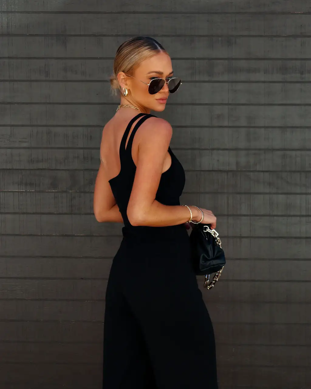 Model is Wearing a Size Small. Height is 5’8″, Bust is 35”, Waist 26”, and Hips 36”