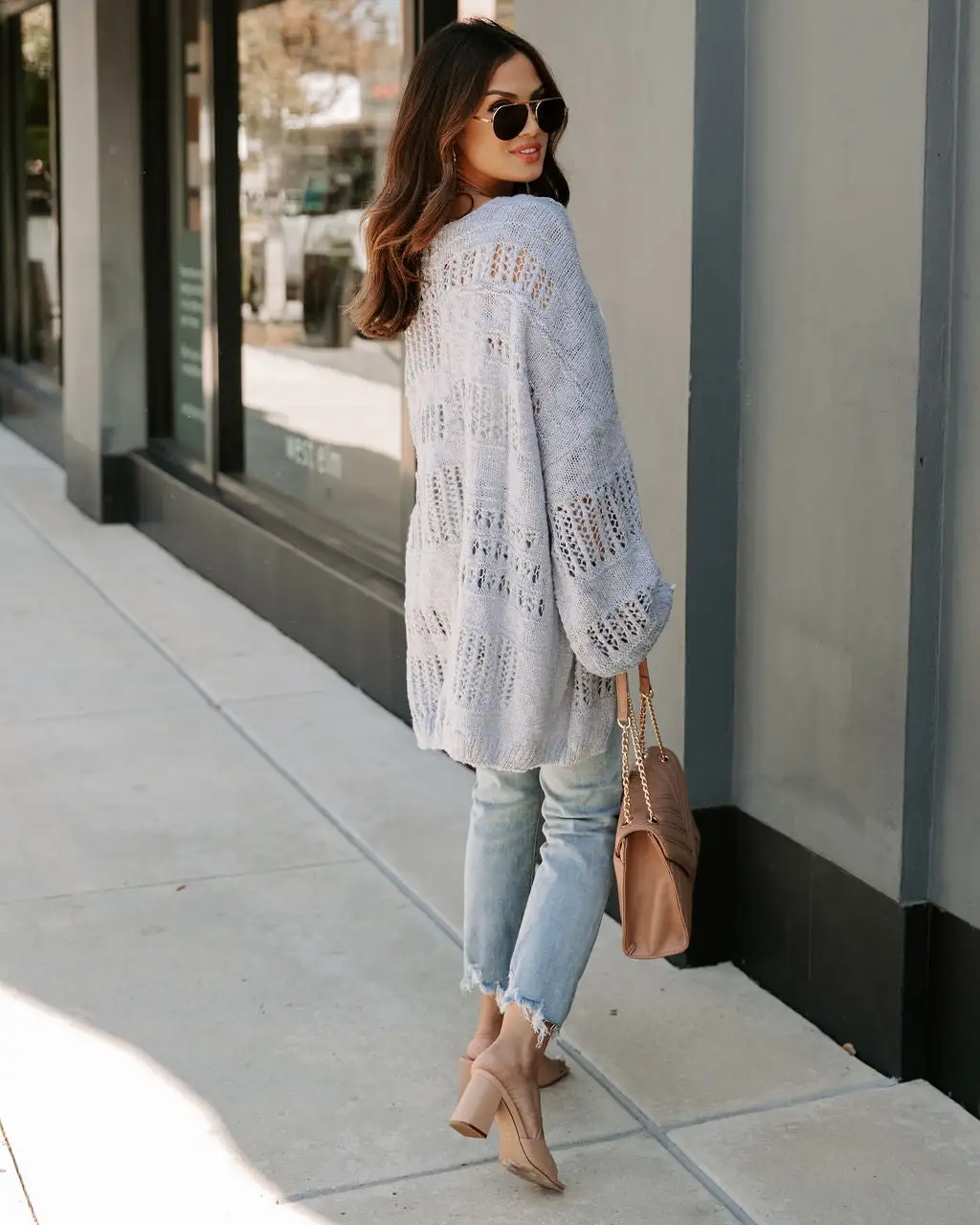- Size M: Length measures 34” from shoulder to hem with a 32” bust