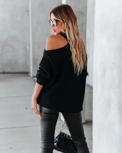 &MER-001 A La Mode Cutout Turtleneck Knit Sweater – Black – FINAL SALE
