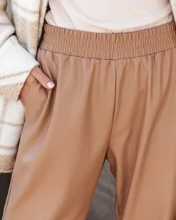WHIT-001 No Limitations Pocketed Faux Leather Jogger Pants – Camel – FINAL SALE