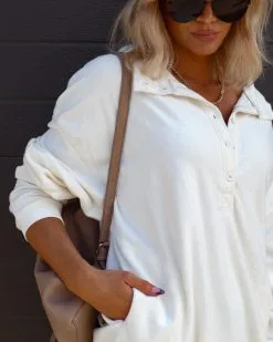 WISH-001 Corrine Pocketed Henley Pullover Sweater – Cream – FINAL SALE