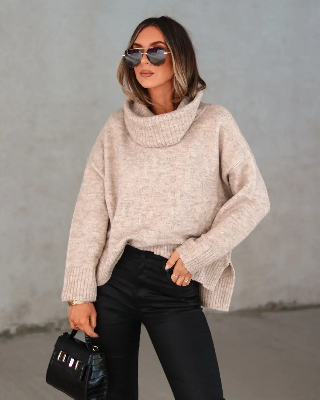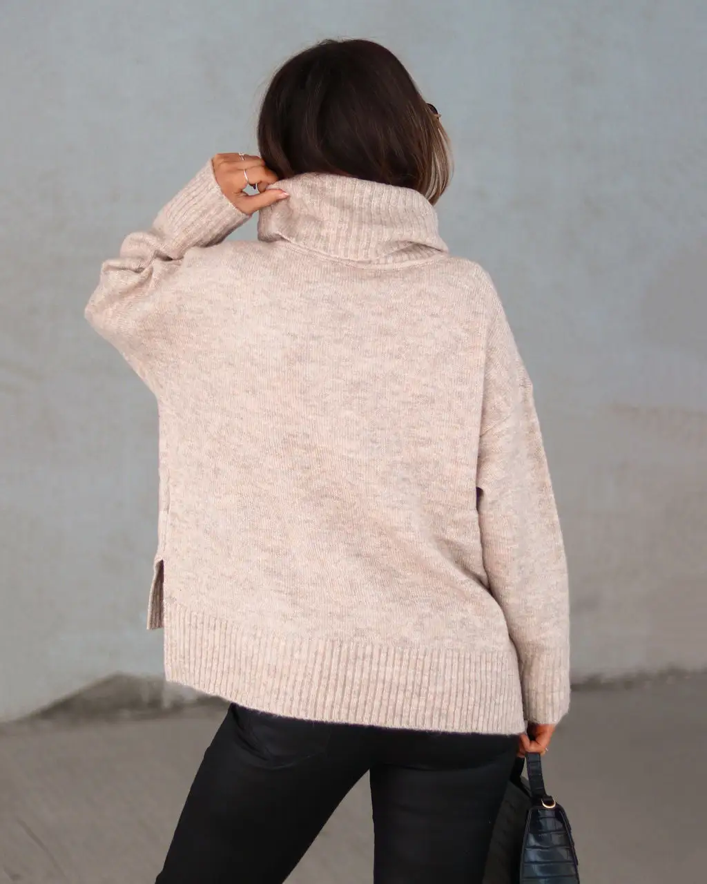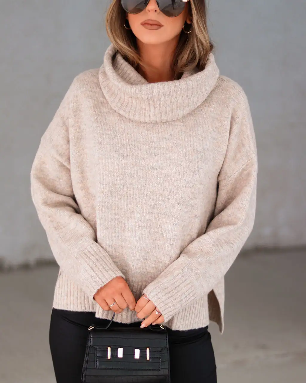 Elevate your style in the Coffee Chats Turtleneck Sweater in a taupe that features a soft knit fabrication.