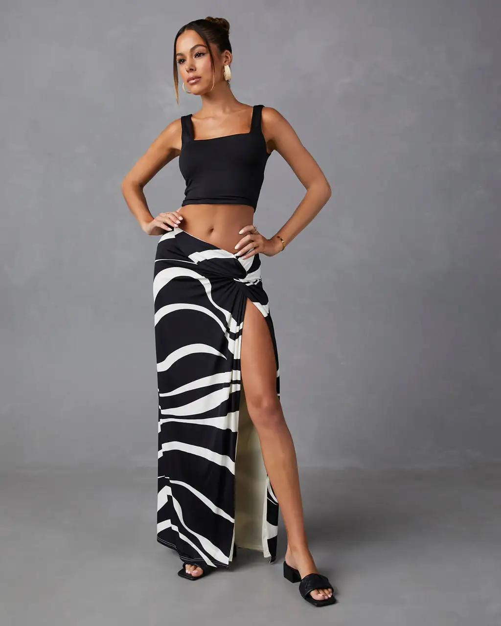 Model is wearing a Size Small. Height is 5’8”, Bust is 32”, Waist 25”, and Hips 34”