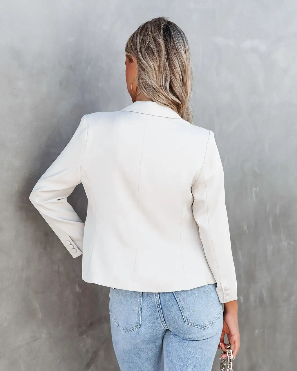 Chic meets professional in the From Night To Day Pocketed Blazer in beige that features a cropped fit.