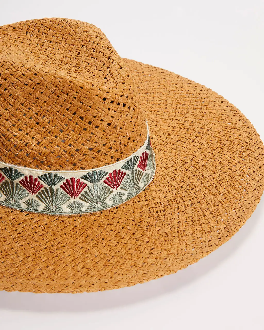 Dylann Embroidered Ribbon Straw Hat – Tan