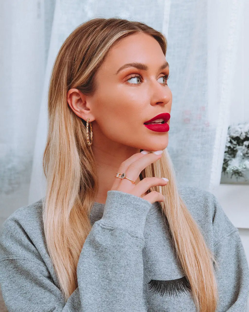 Our Elivia Bamboo Hoops are giving us resort vibes! These gold plated hoops feature bamboo details and cz stones. Secured with a hinged closure. Styled with the Eyelashes Cotton Blend Sweatshirt.