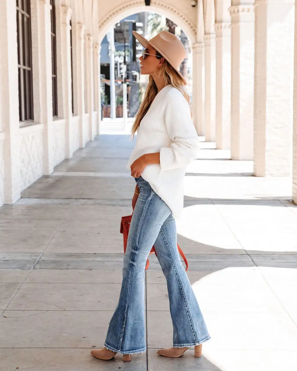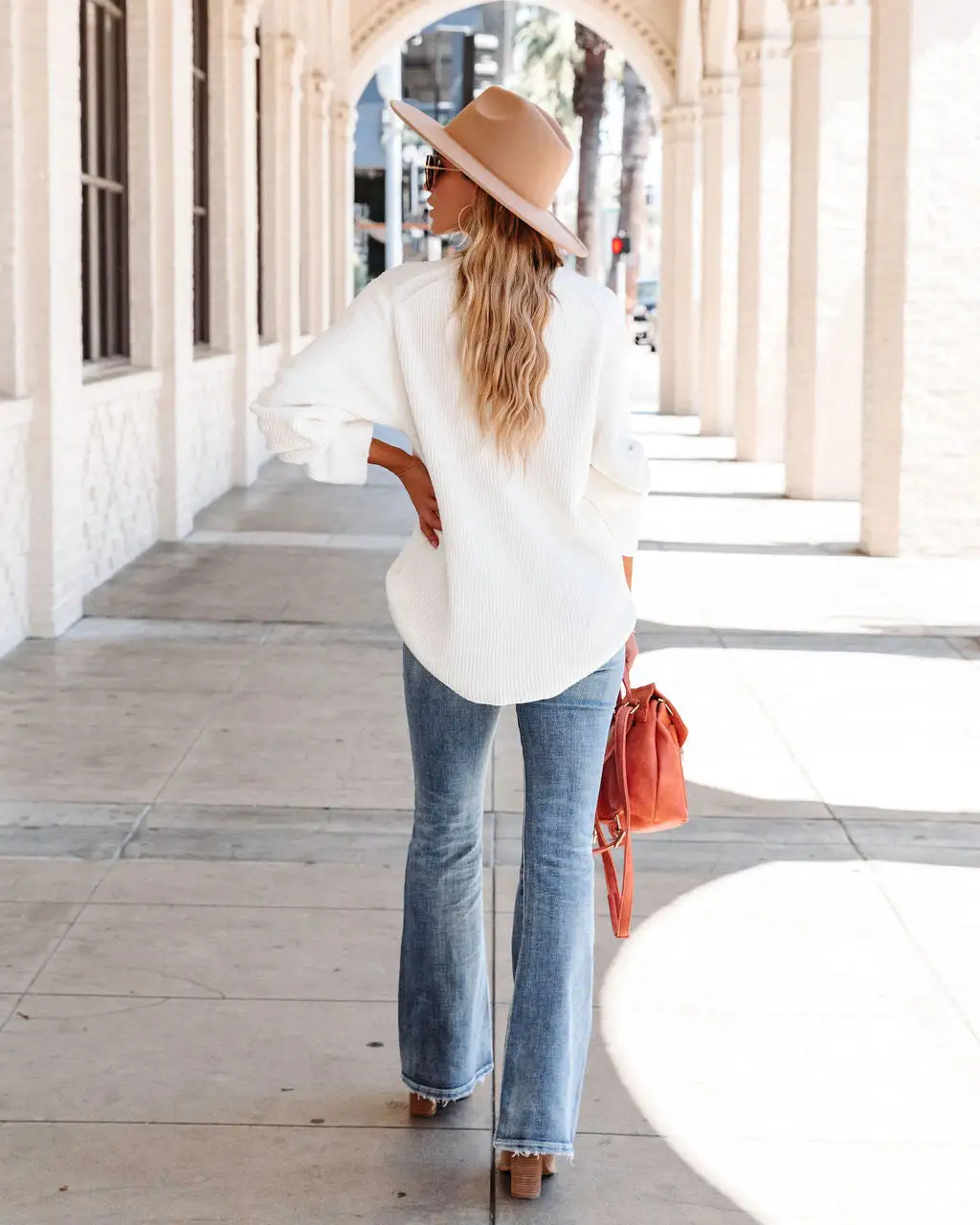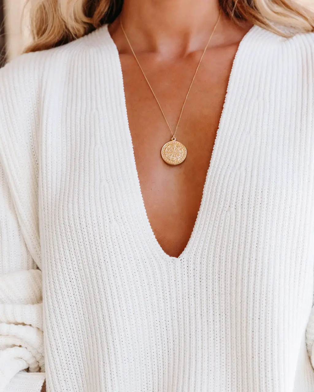 Keep warm for Fall in the Emmett V-Neck Knit Pullover in cream that features a v-neckline.