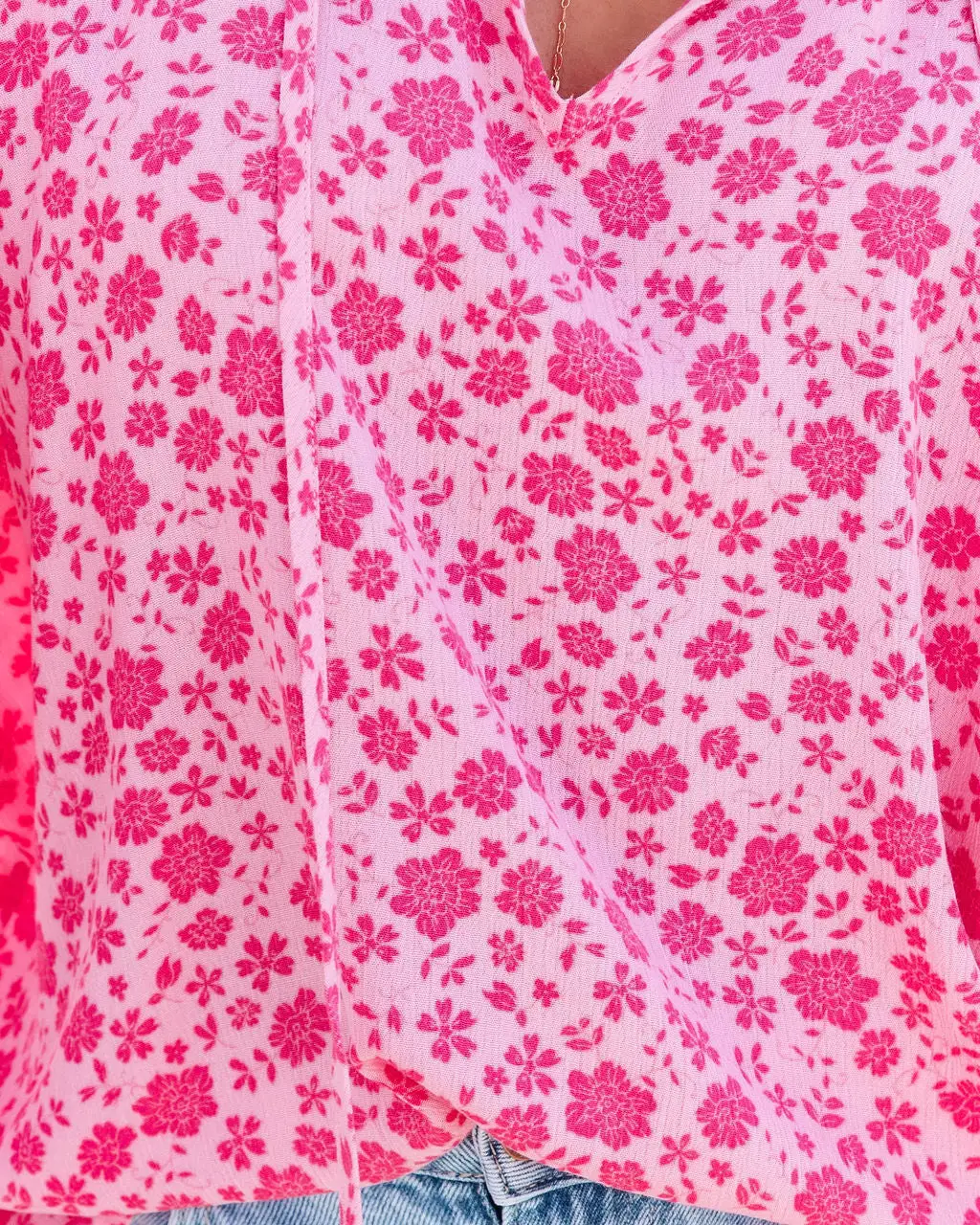 Stand out in the office in our Desert Wanderer Floral Top in pink multi that features a split neckline and billowed sleeves.
