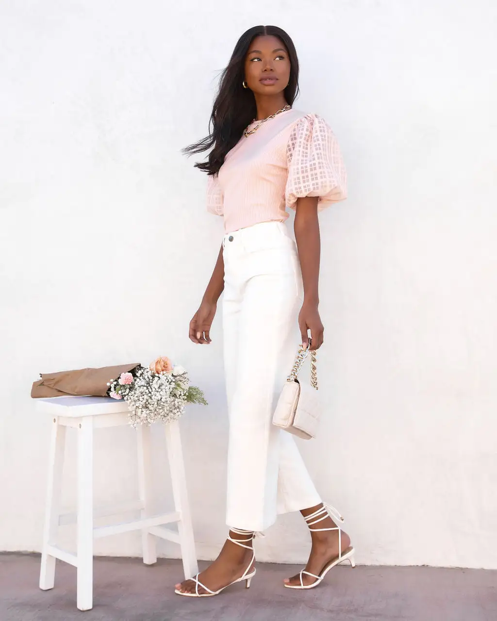 Take their breath away in the Enchanted Puff Sleeve Top in Pink, featuring patterned semi-sheer puff sleeves that accentuate a fitted, knit body.