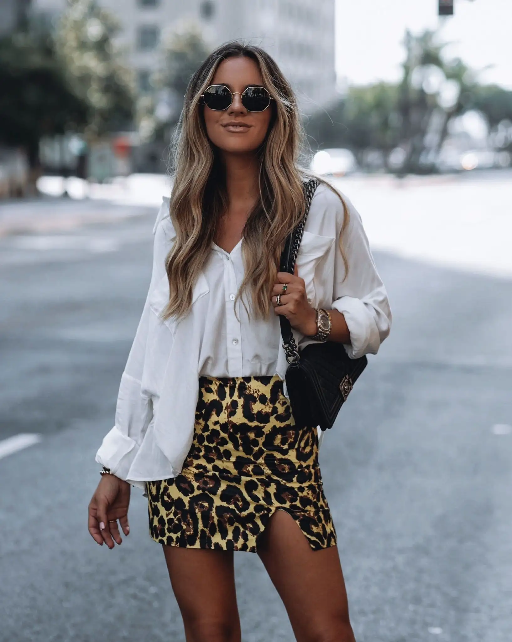Bold animal prints are stealing the show this season! Our Haute Leopard Slit Mini Skirt features yellow, chocolate brown, and black leopard spots. Finished with a concealed side zipper closure.