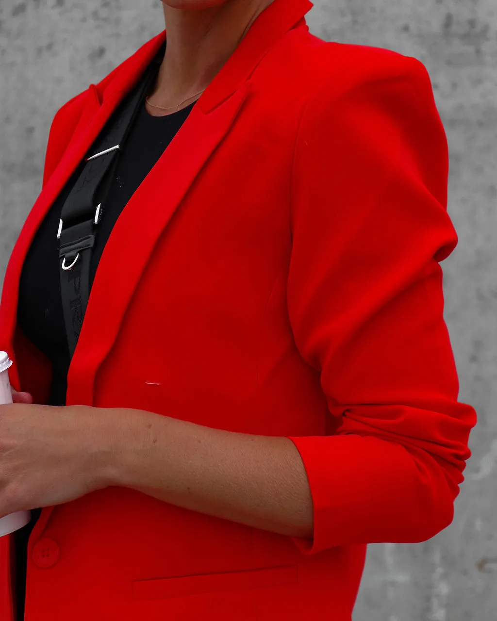 Be a boss babe in our Standards Pocketed Blazer in tomato red that’s detailed with a notched collar and a lower back vent.