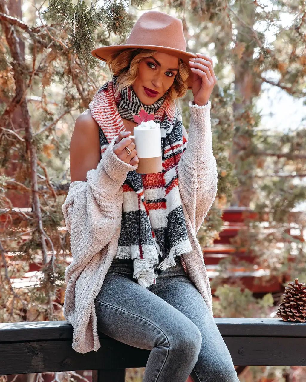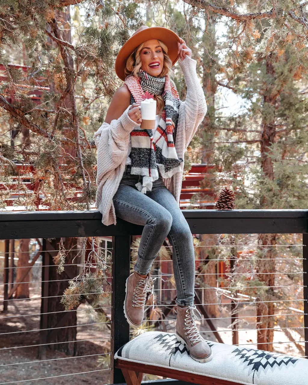 Our Thorn Soft Knit Cardigan feels like a warm hug! This almond hued cardi was made in the coziest knit ever. Designed with dolman sleeves and an open front. The perfect throw on and go piece. Styled with the El Dorado Hat, Jenesis Striped Scarf, Tahiti Hoops, Crystal Droplet Choker, The Buddha Wheel Necklace, Physique Racerback Tank, Population High Rise Skinny, and Arlene Faux Suede Lace Up Boot.