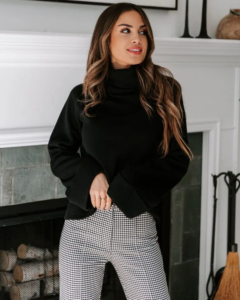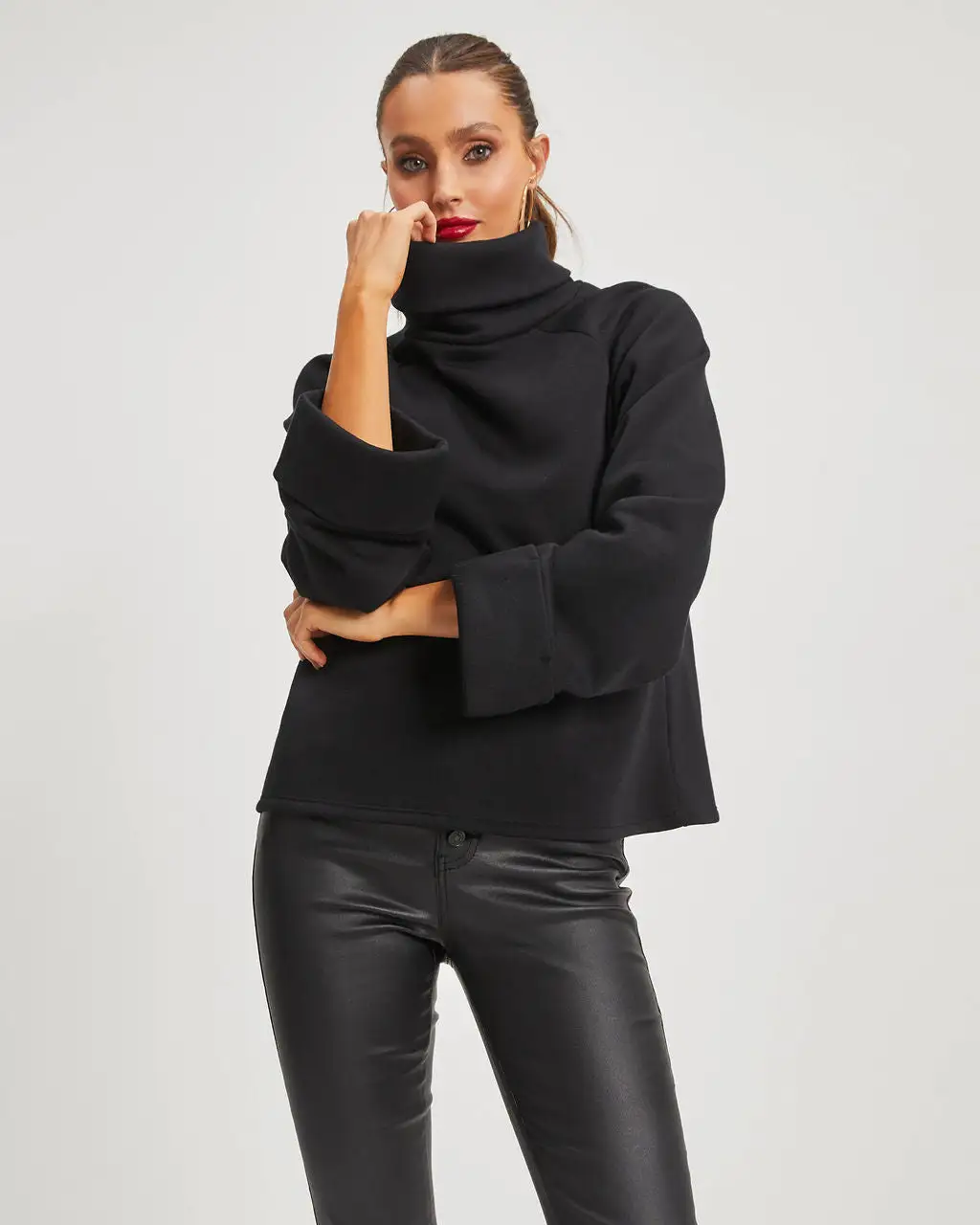 Cozy meets classic in the Ezra Turtleneck Pullover Sweater in black that features a turtle neckline.