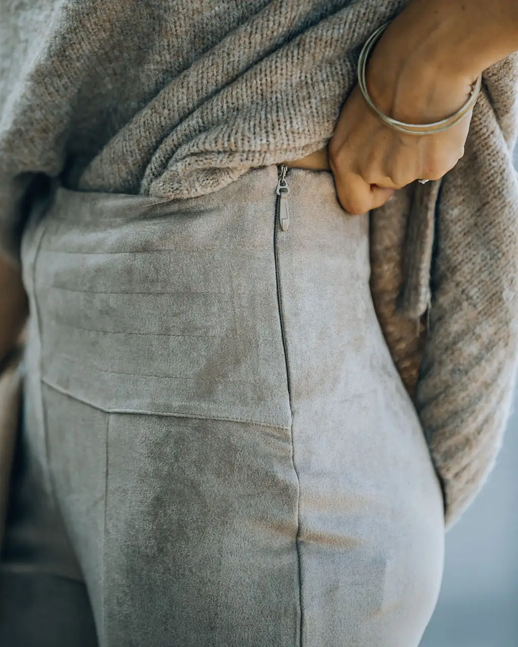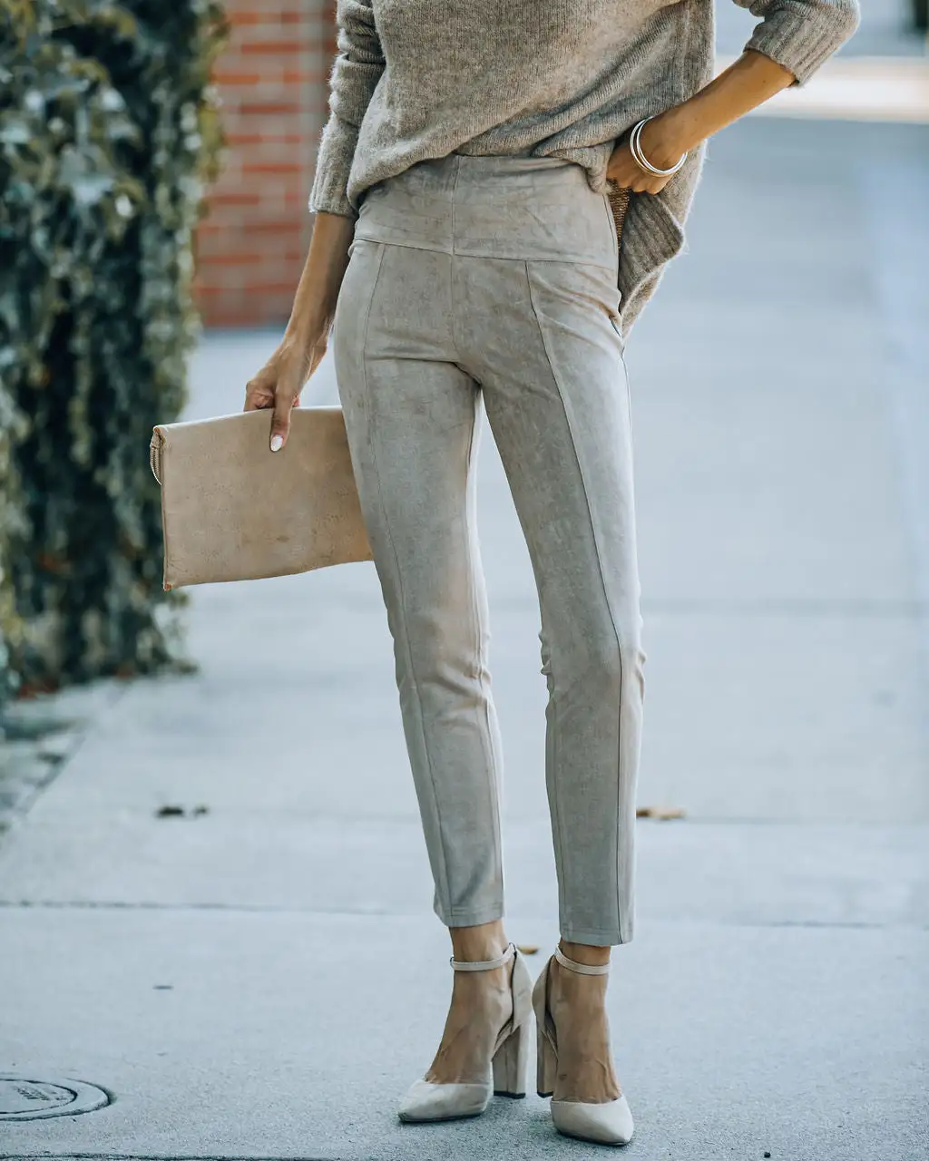 //VICI Exclusive// Look chic all day in our Cairo Faux Suede Legging! These taupe colored pants feature a skinny leg and a stretch. Finished with a concealed side zipper closure. These pants are not lined. Styled with the Simple Bangle Bracelet, Stella Crossbody Envelope Zip Clutch, Henry Sweater, and Ritz Faux Suede Pointed Heel.