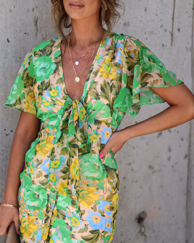 Model is Wearing a Size Small. Height is 5’5″, Bust is 34”, Waist 26”