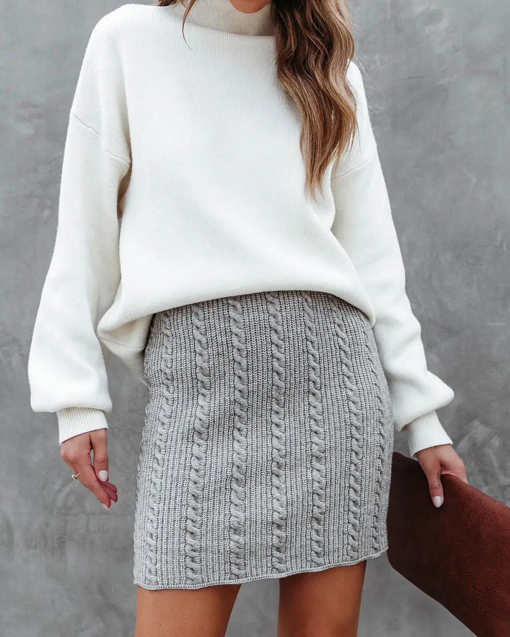 Cozy meets cute in the Just Cozy Enough Cable Knit Mini Skirt in grey that features an elastic waistband.