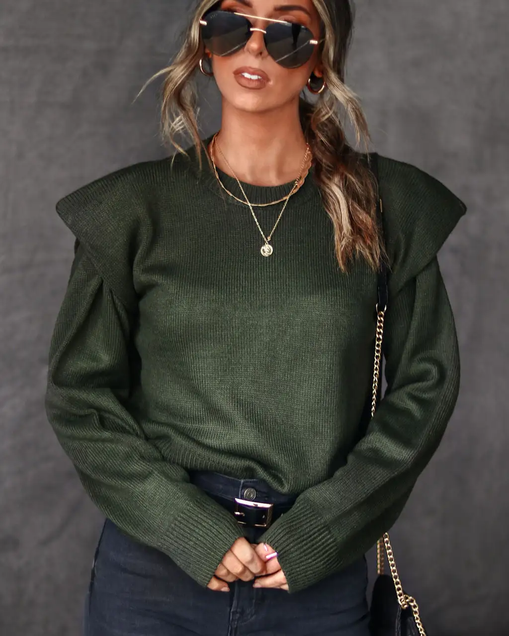 Cozy meets cute in the Make It Unique Knit Padded Shoulder Sweater in cream that features padded shoulders.