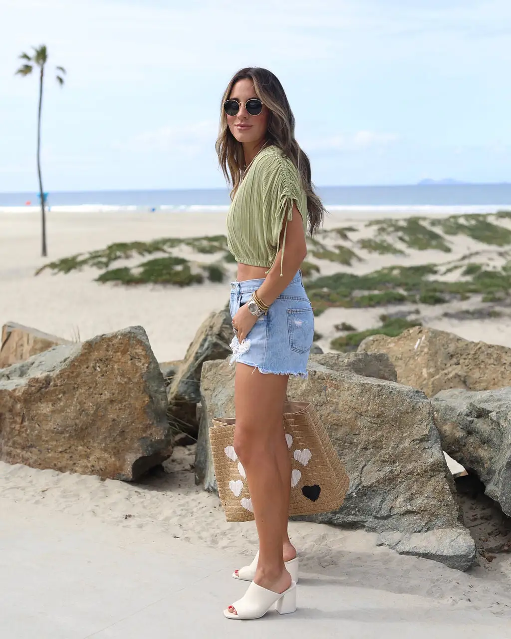 Model is Wearing a Size Small. Height is 5’7”, Bust is 37”, and Waist 27”