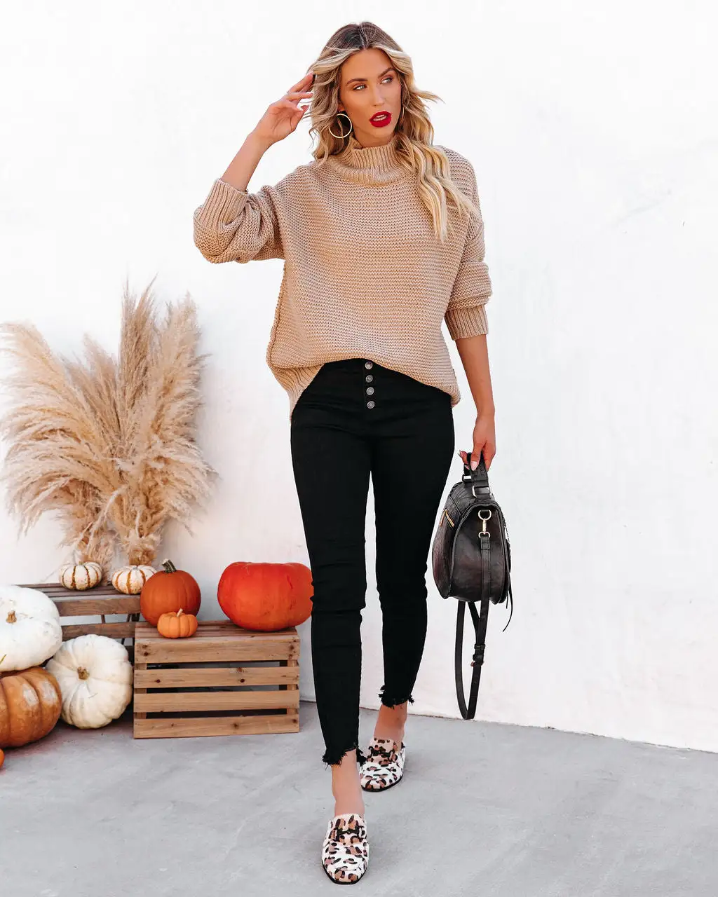 //VICI Exclusive// Stay inside all season long in our Glacier Mock Neck Knit Sweater! This warm beige hued sweater comes in the coziest thick knit fabric. Designed with a high neckline and no closures.