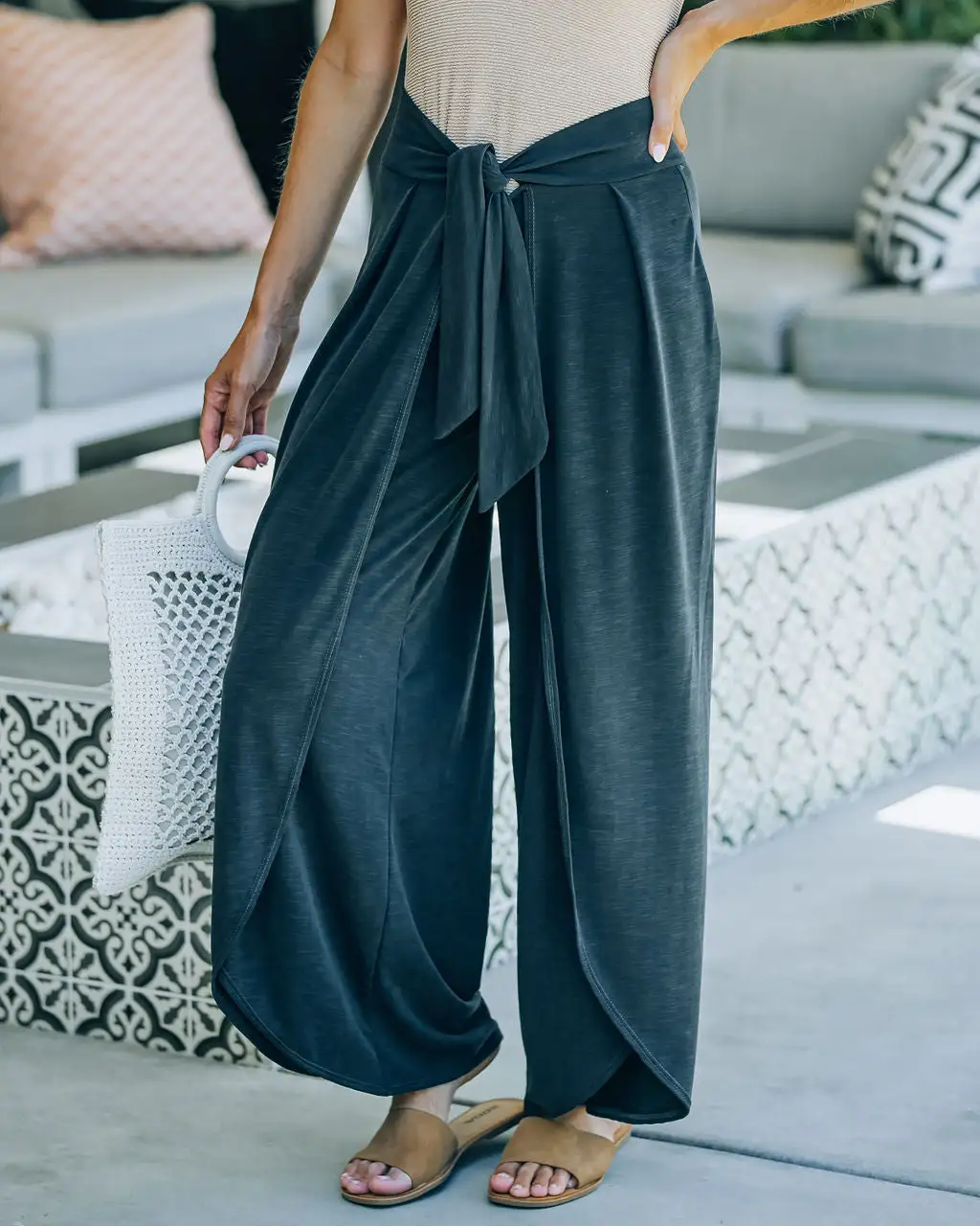 //Best Seller// Our Grenada Tie Front Modal Blend Pants are the ultimate luxe lounge look in a charcoal hue with a front tie closure.