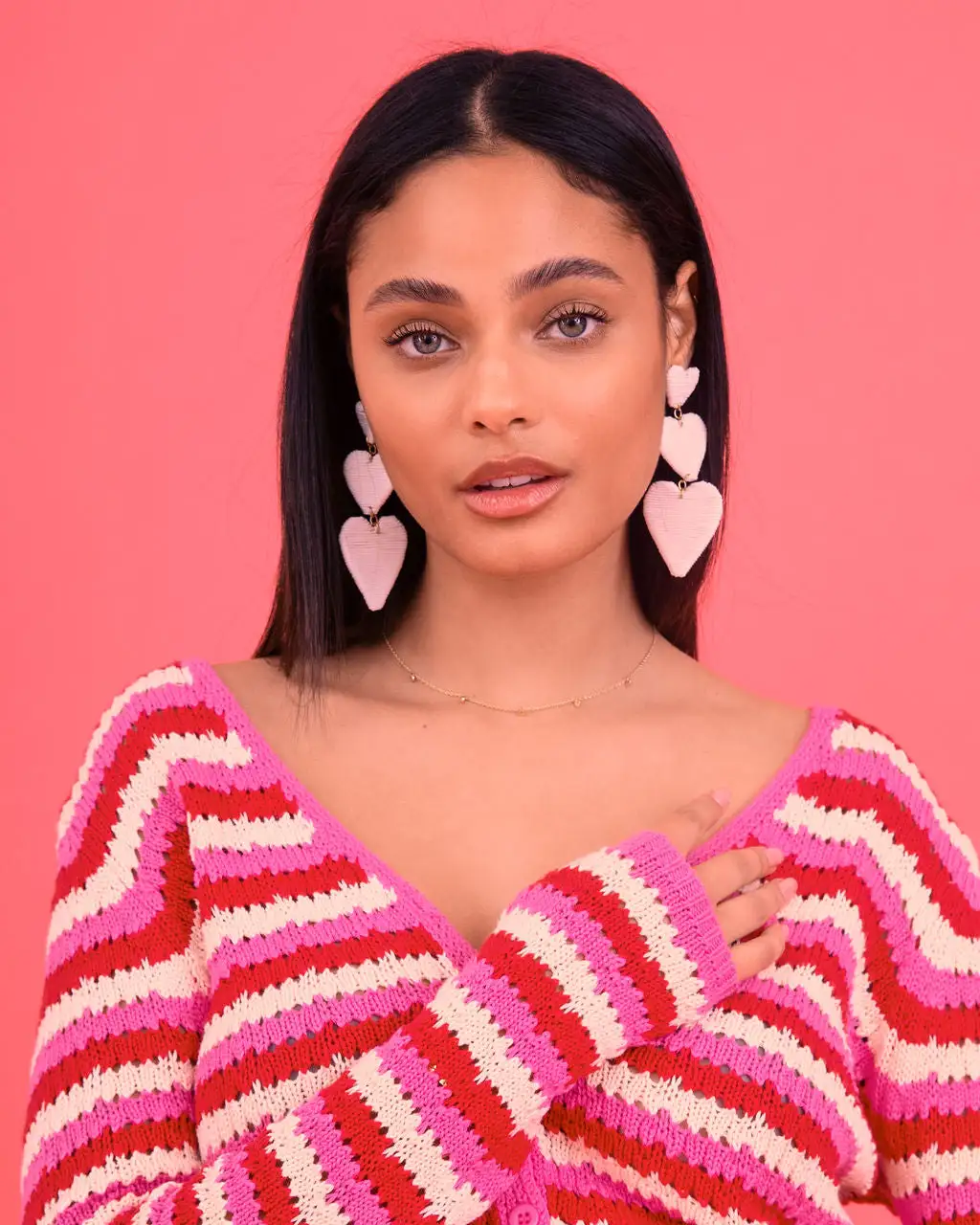 Add luxe to your look in the Heart To Heart Woven Earrings in white that features a push backing.