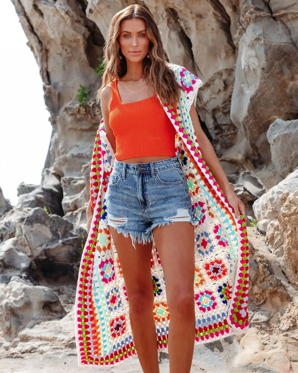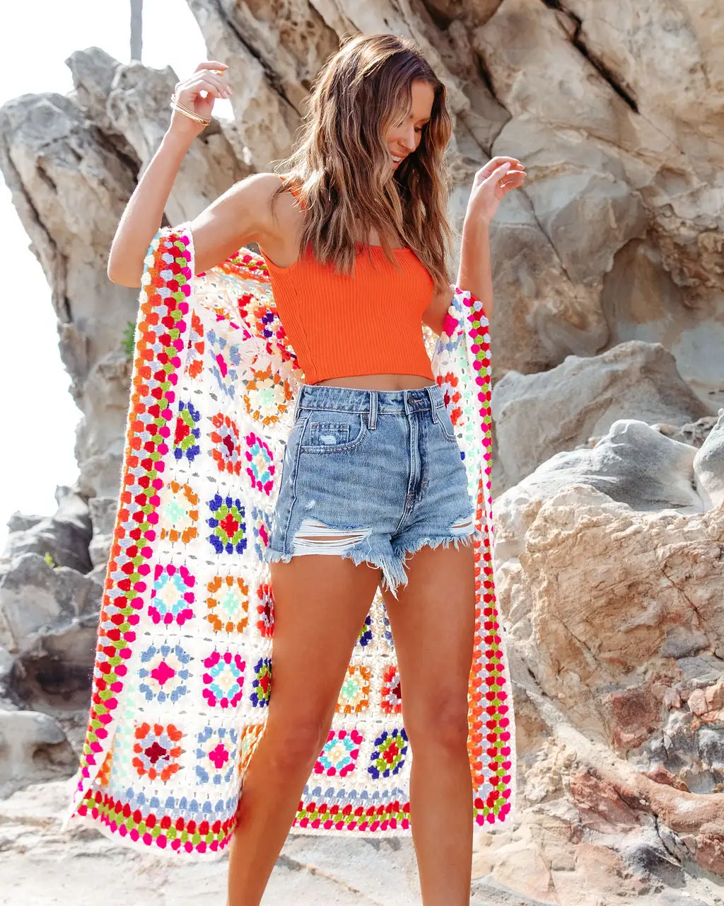 Model is Wearing a Size Small. Height is 5’7″, Bust is 32”, Waist 25”, and Hips 30”