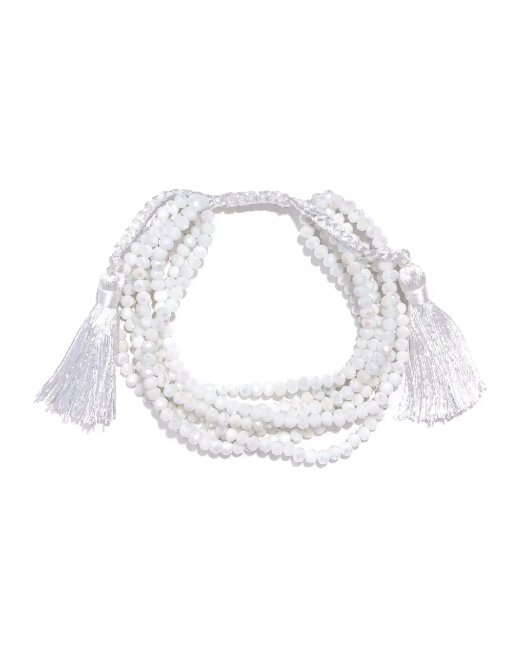 Add to your bangle collection in the Karma Fringe Stack Bracelet in white that features an adjustable closure.