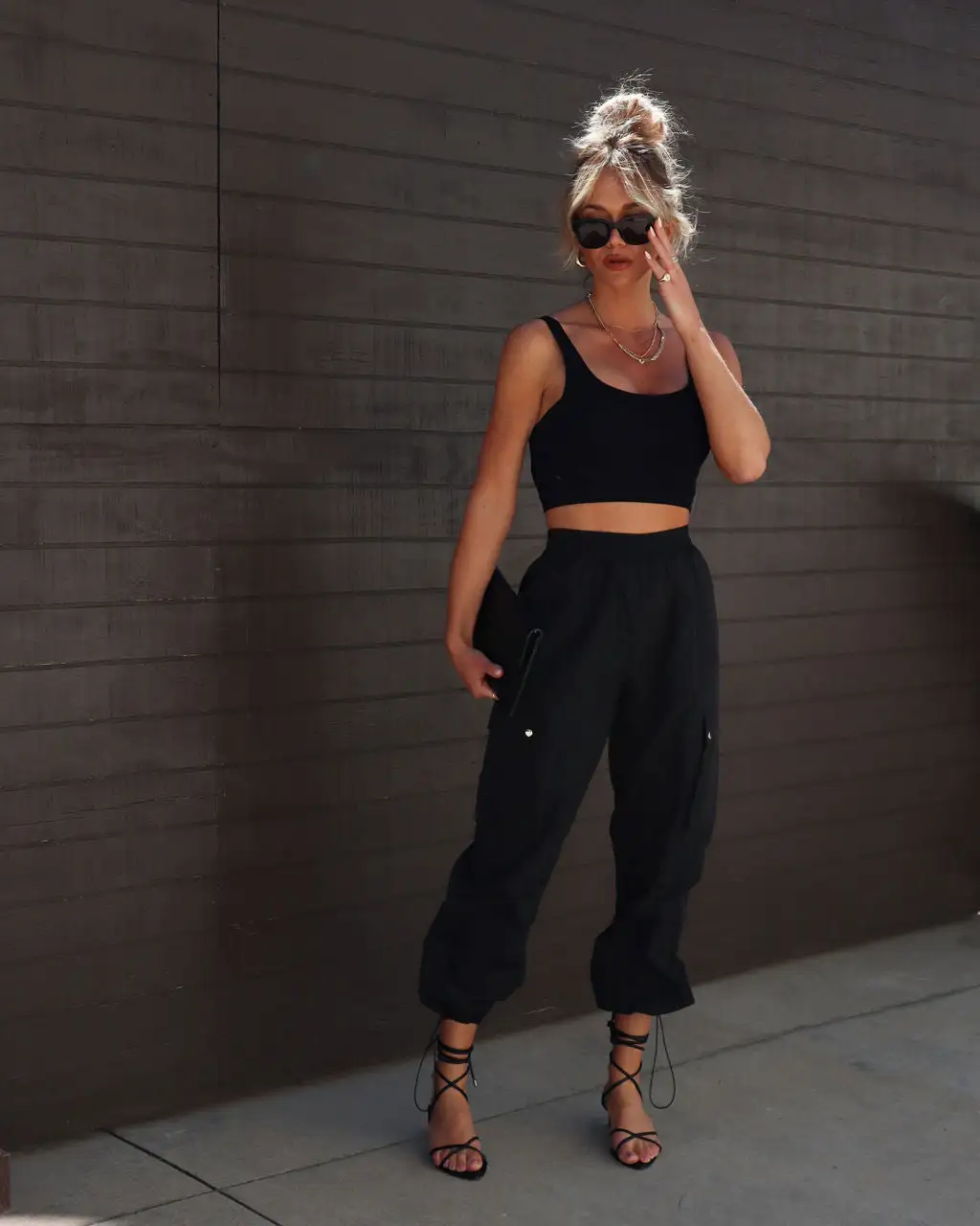 - Size L: Length measures 41” from waist to hem with a 12.5″ rise, 29.5” inseam and 30” waist