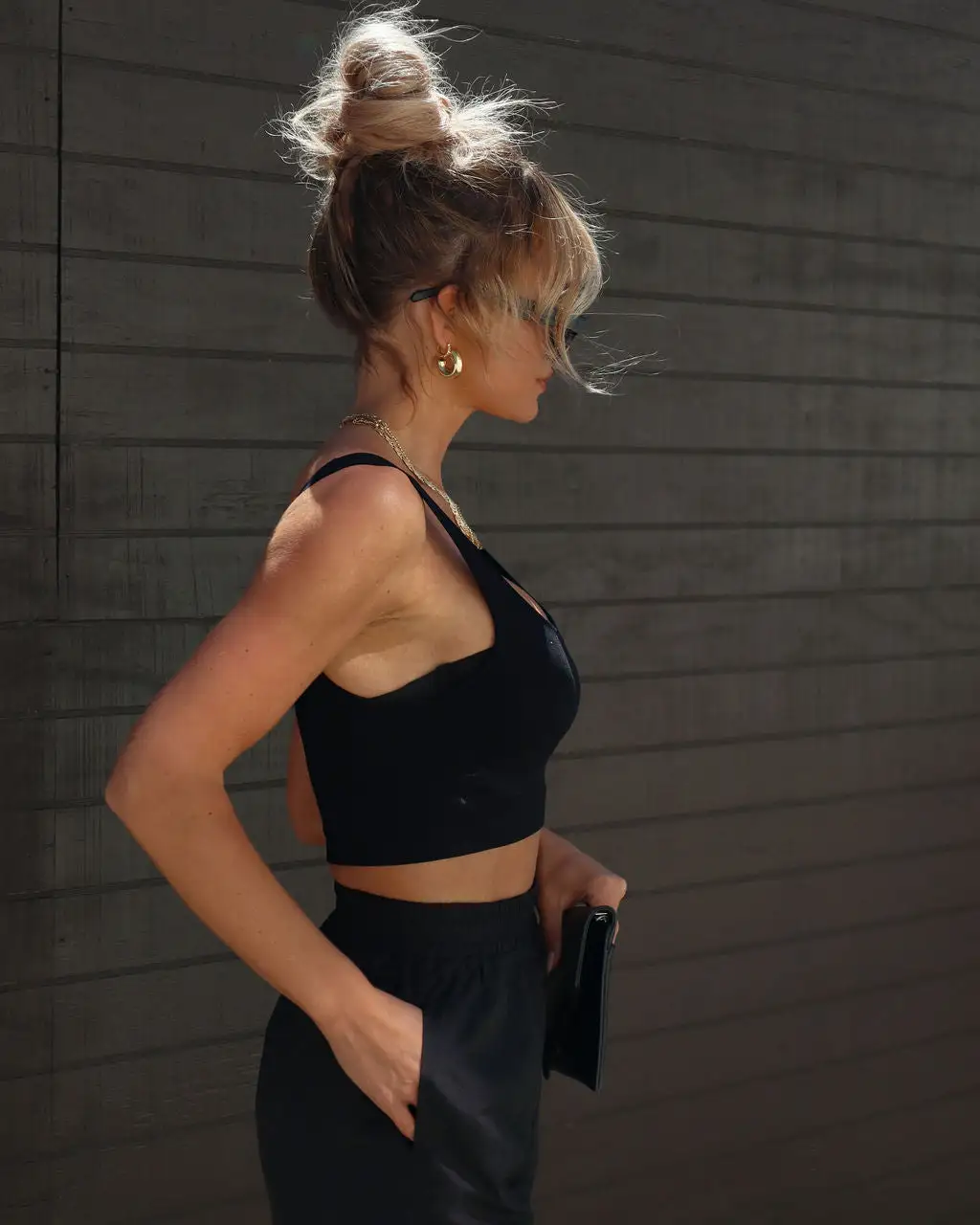 Model is Wearing a Size Small. Height is 5’8″, Bust is 35”, Waist 26”, and Hips 36”