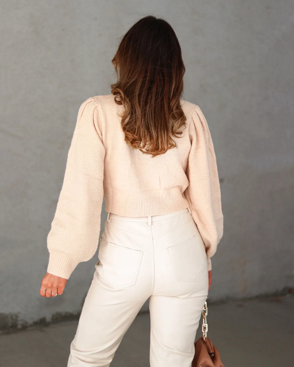 Comfy meets preppy in the Lulu Pointelle Knit Cardigan in oatmeal that features ribbed edges.