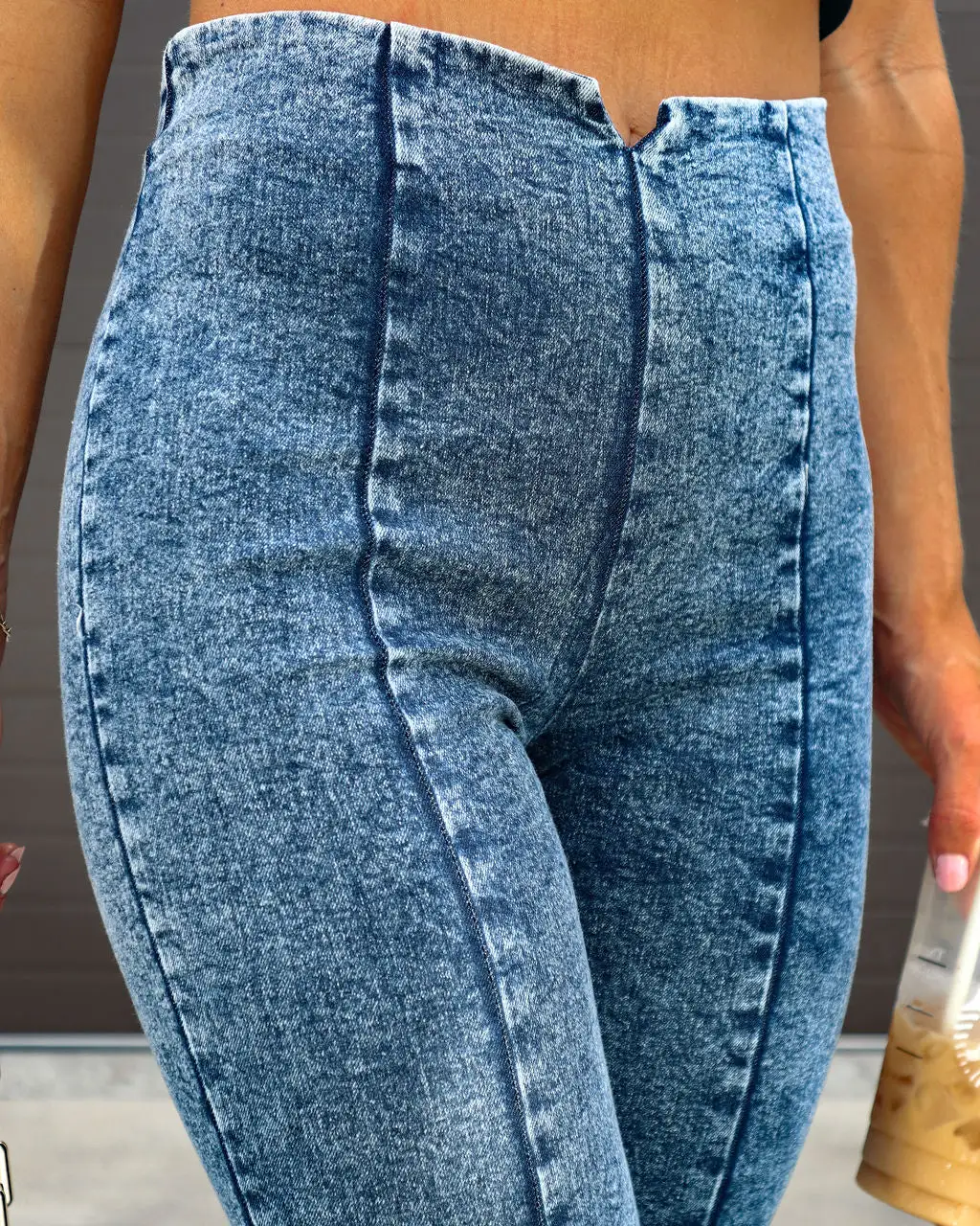 We’re loving the edgy vibes of the Kurtis Acid Wash Split Hem Pants in blue that feature a slt hemline.
