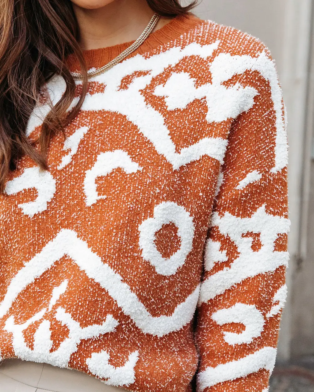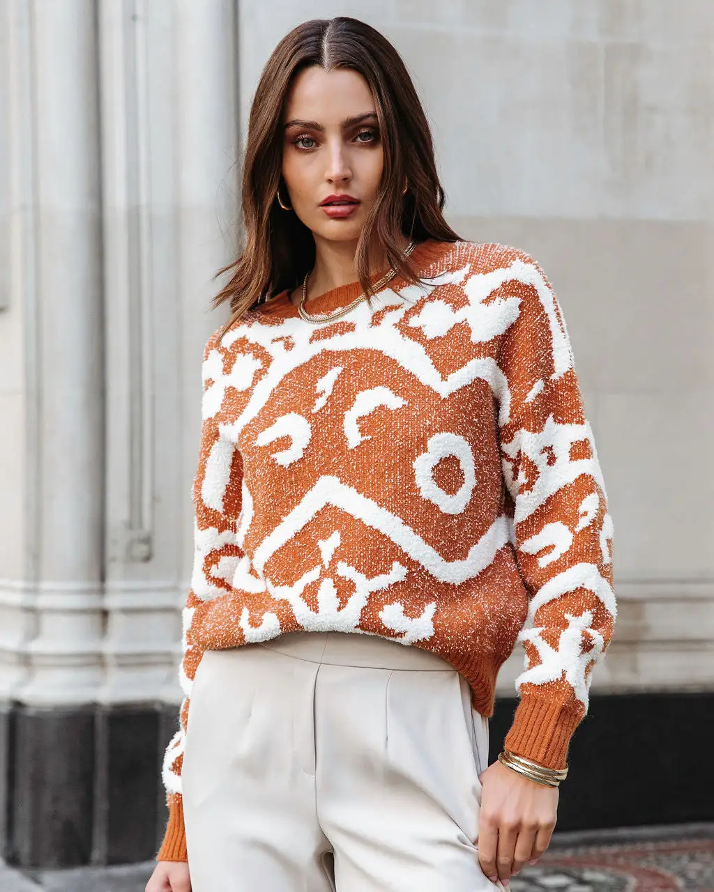 Head to the mountains in the Mariano Knit Pullover Sweater in caramel that features a crew neckline.