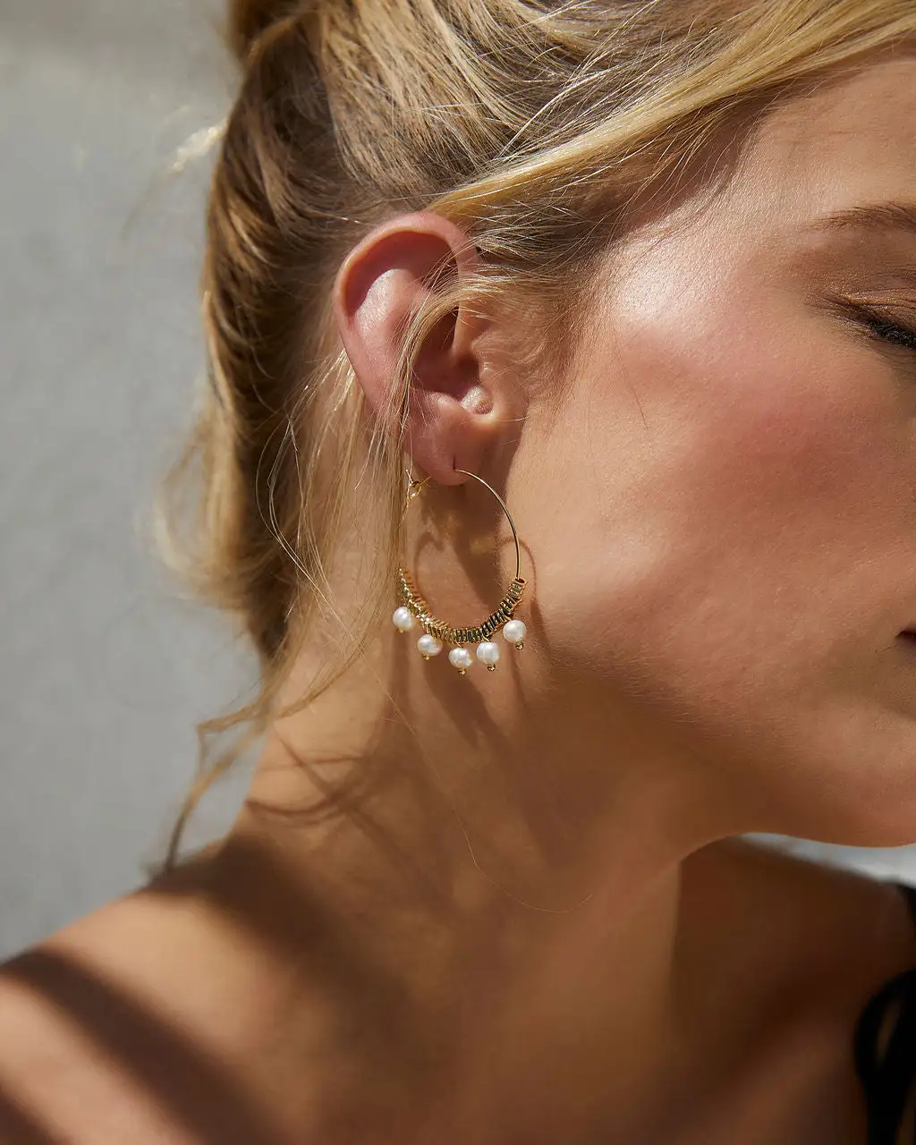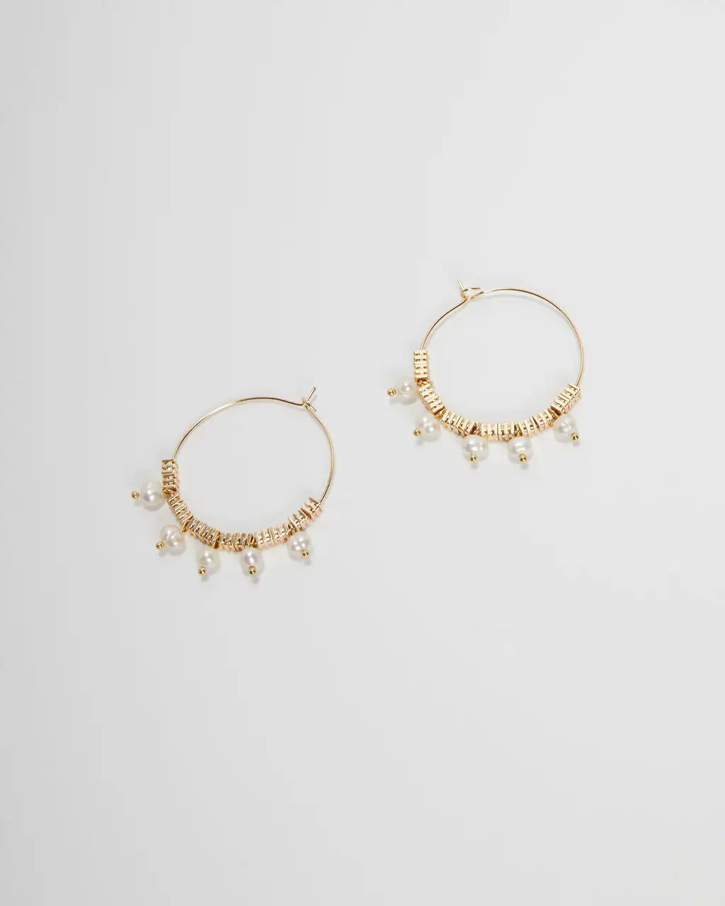 Marley Pearl Embellished Hoops - Gold -clothes Sales marleypearlhoopsgold28