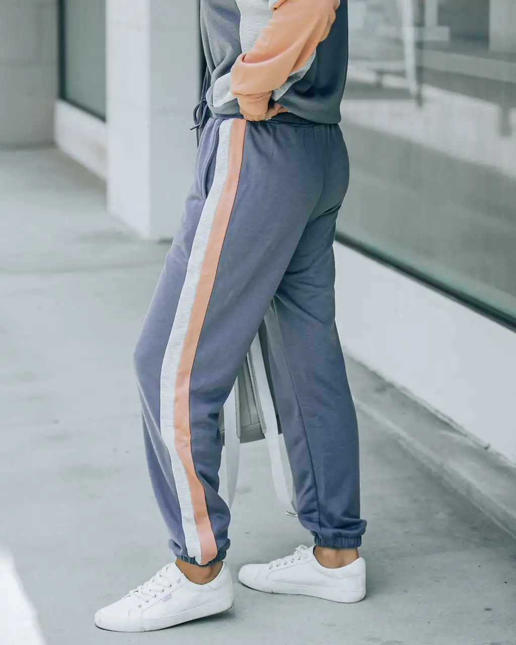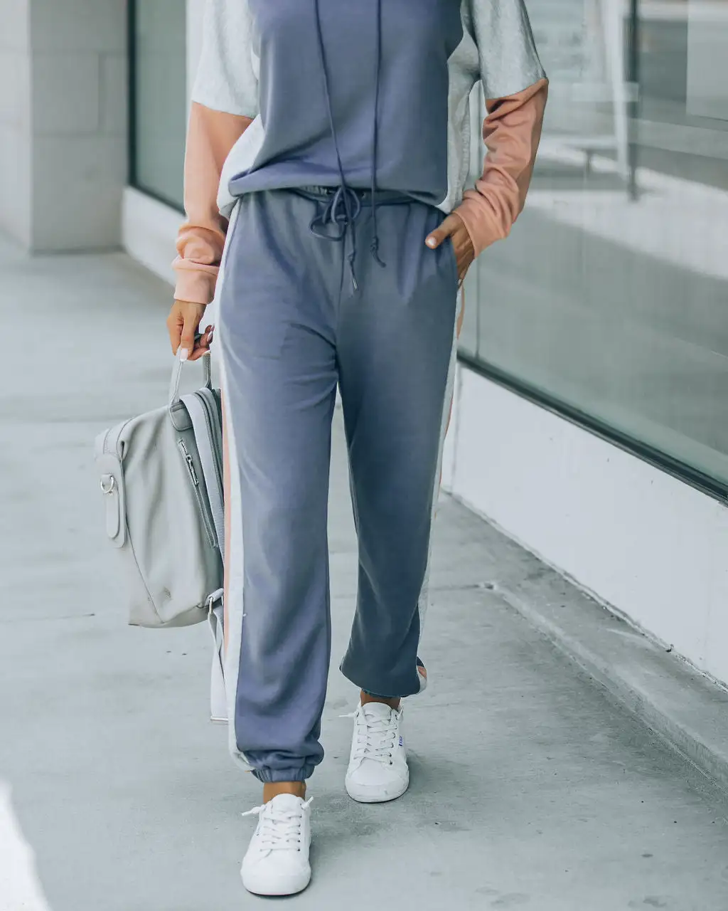 Upgrade your comfy clothes in the Mia Colorblock Pocketed Joggers in blue that feature side pockets.