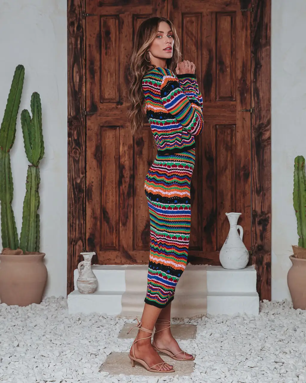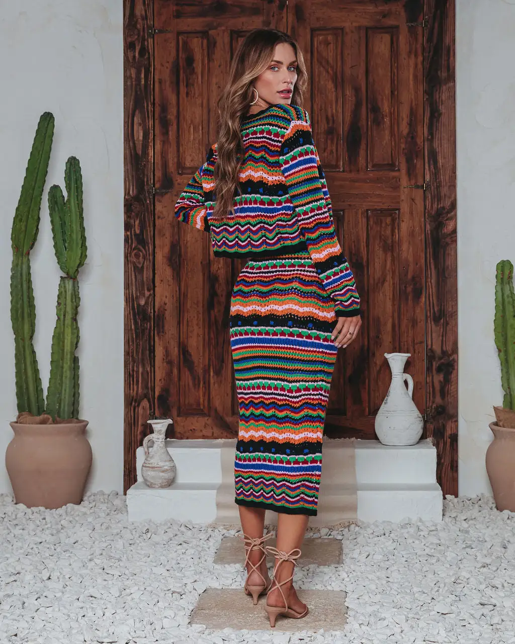 Boho meets cute in the Milano Knit Scallop Trim Open Front Cardigan in multi that features a relaxed fit.