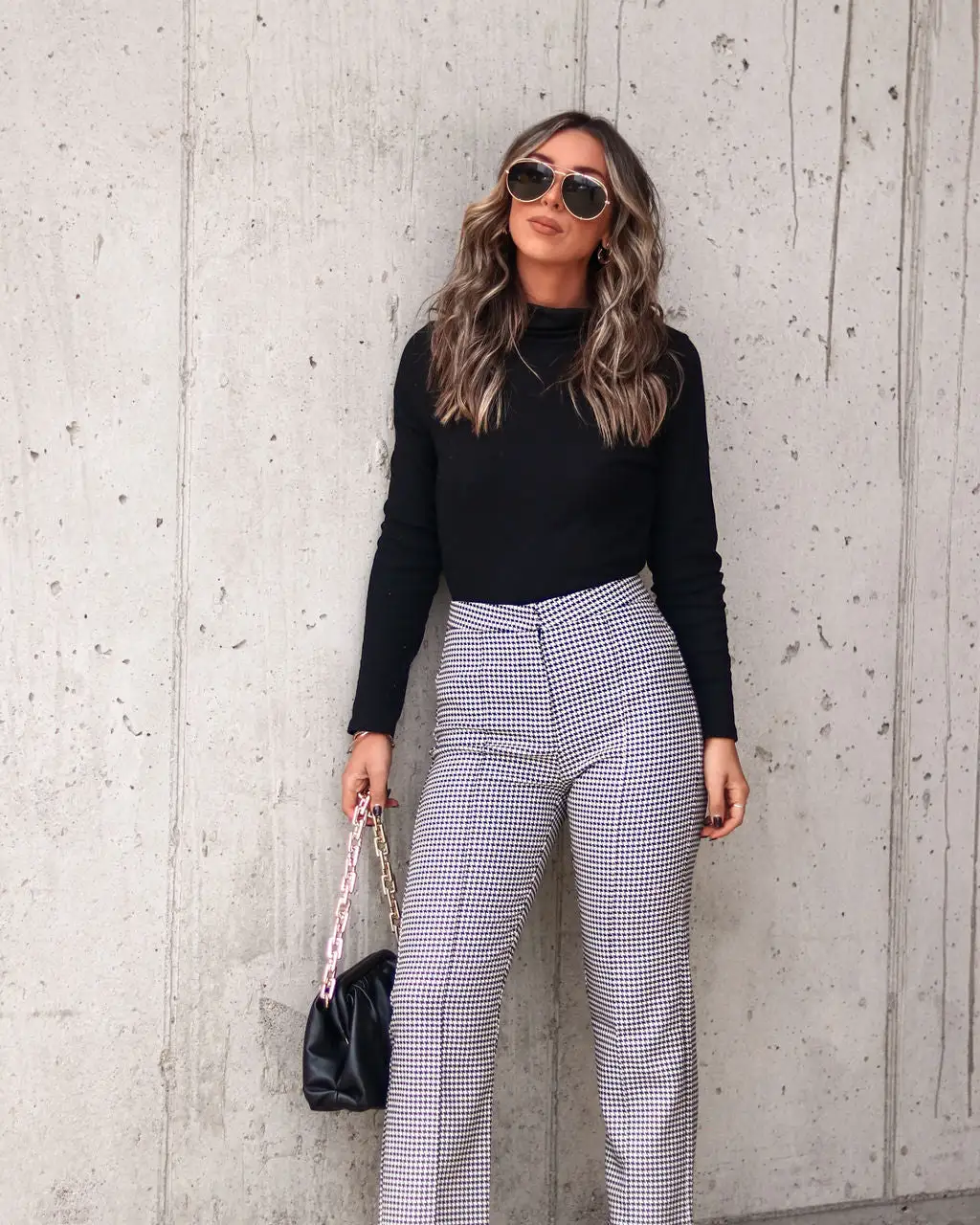 Look chic at work in the Not Ordinary Houndstooth Trousers in charcoal that feature a straight leg.