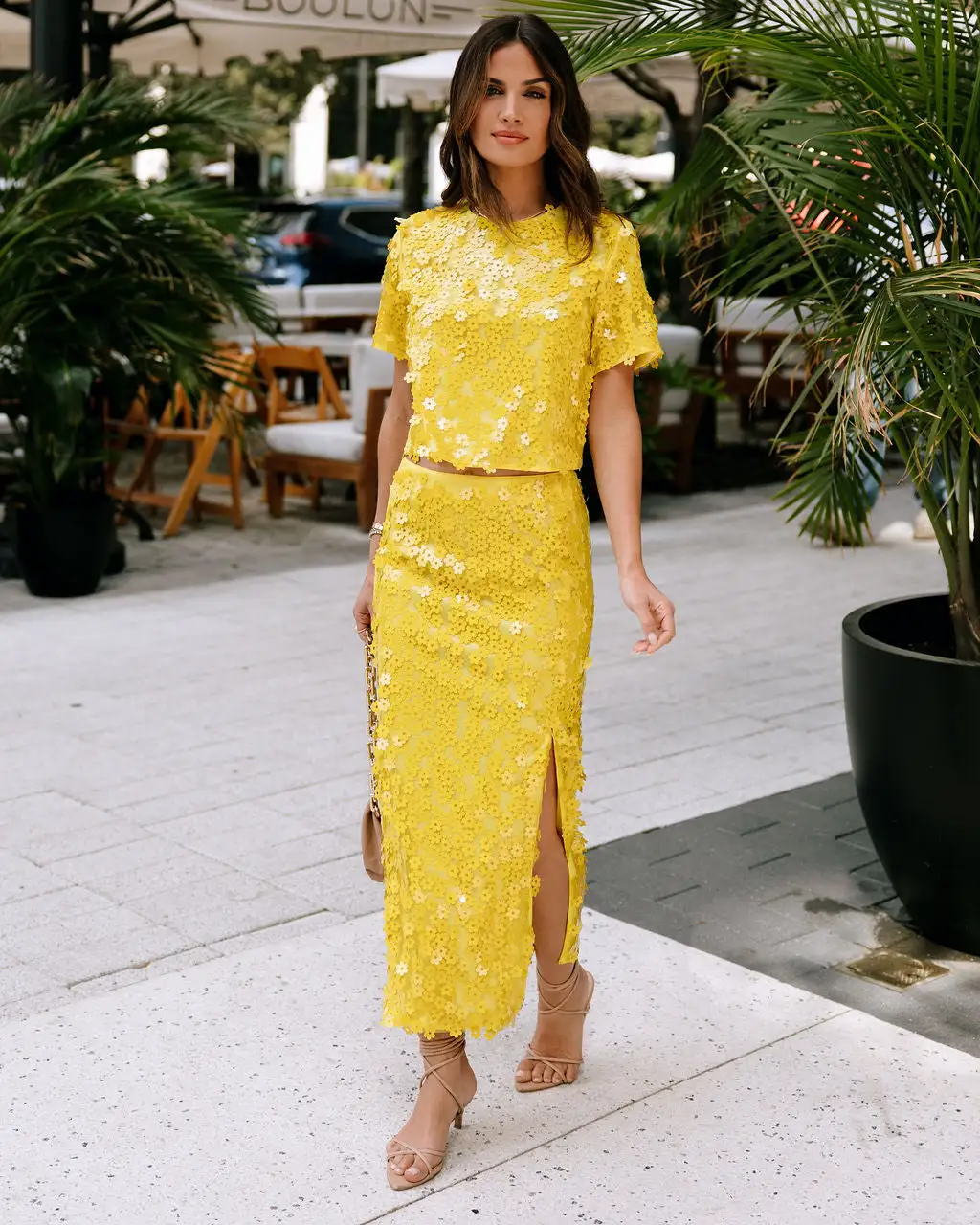 Model is Wearing a Size Small. Height is 5’7”, Bust is 33”, Waist 25.5”, and Hips 34”