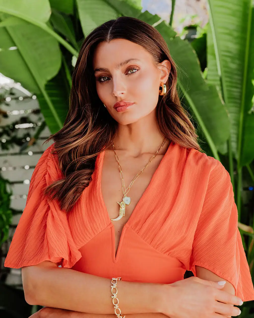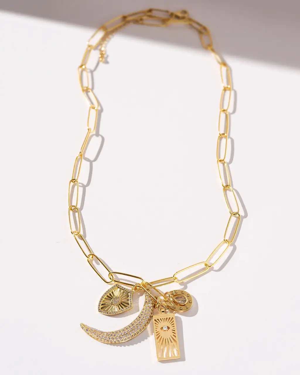 Add a little luxe in the Once Upon A Moon Necklace in gold that features a clasp closure.