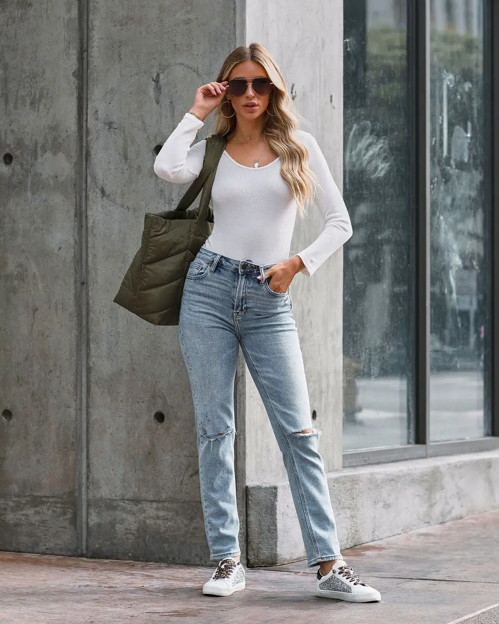 Styled with: Perfect Hoops, Compass Coin Necklace, Simple Bangle, Avery Tote, Morgan Jean, and Renata Sneaker.