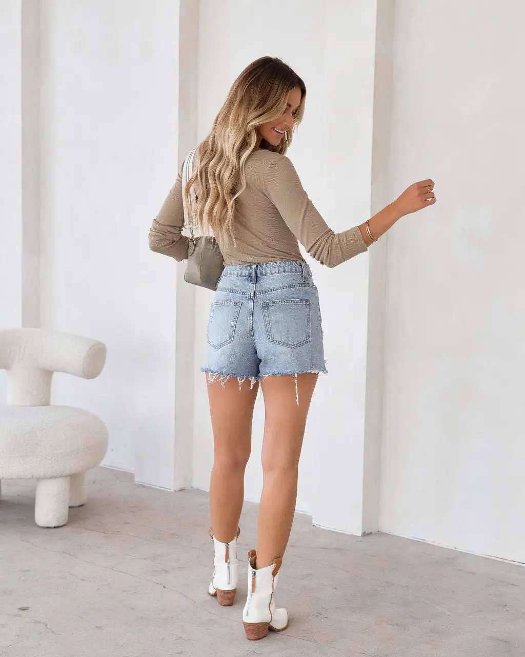 Styled with: Perfect Hoops, Compass Coin Necklace, Simple Bangle, Skylie Bag, Shiva Shorts, and Drifter Boot.