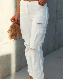 FATE-001 Such A Vibe Frayed Cotton Cargo Pants – White – SALE